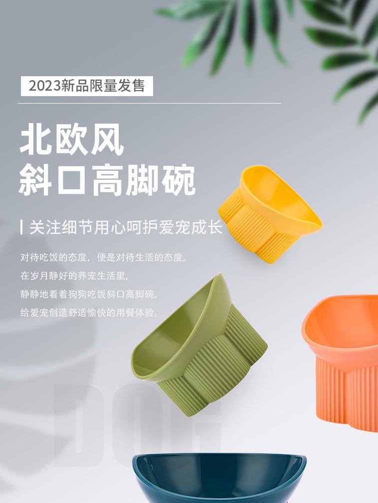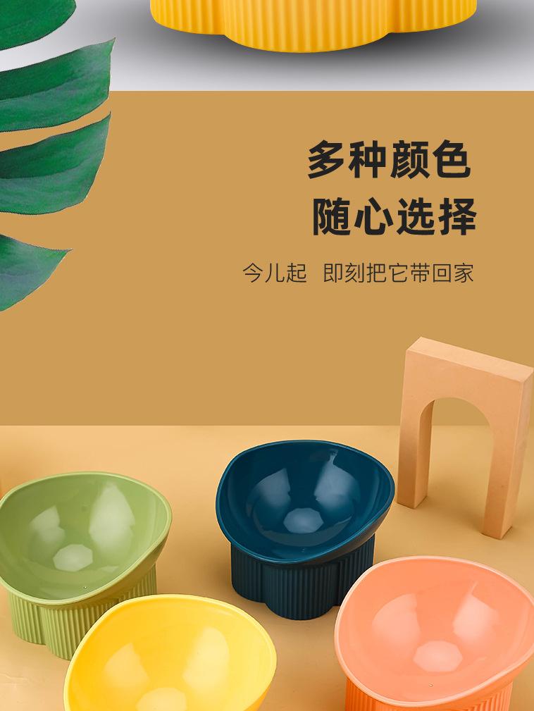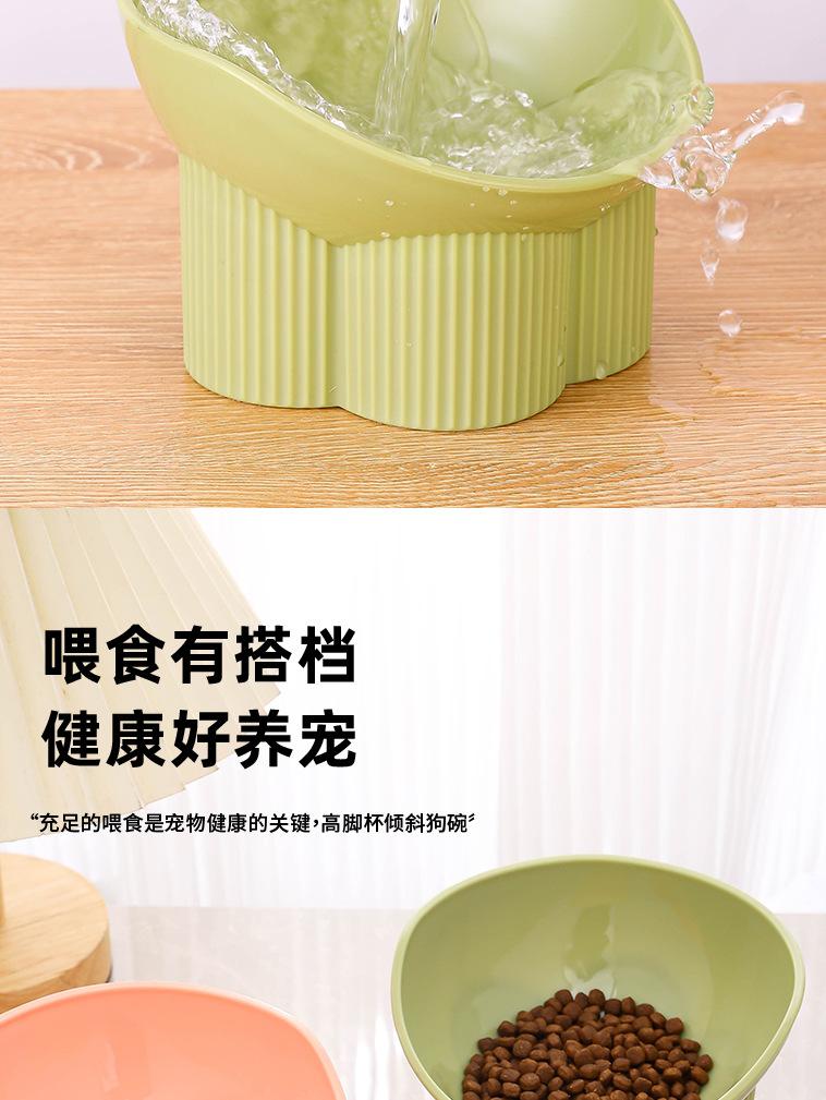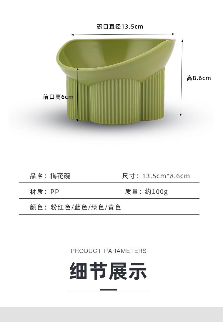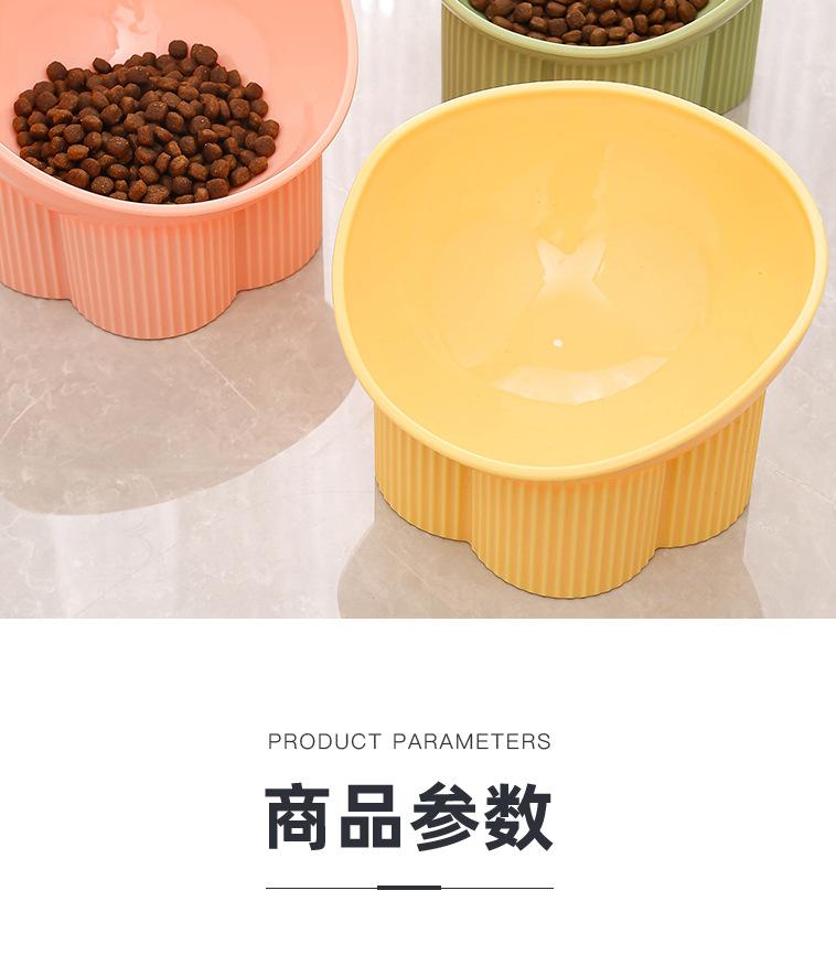 Tigela de proteção para gato, coluna cervical, anti-batida, pé alto, boca oblíqua, tigela para animais de estimação, tigela de arroz para cachorro e gato, tigela de comida de gato com flor de ameixa