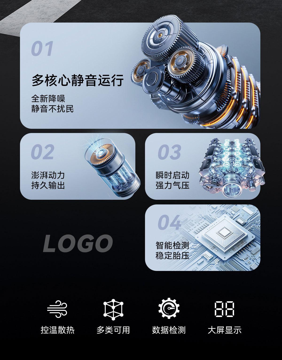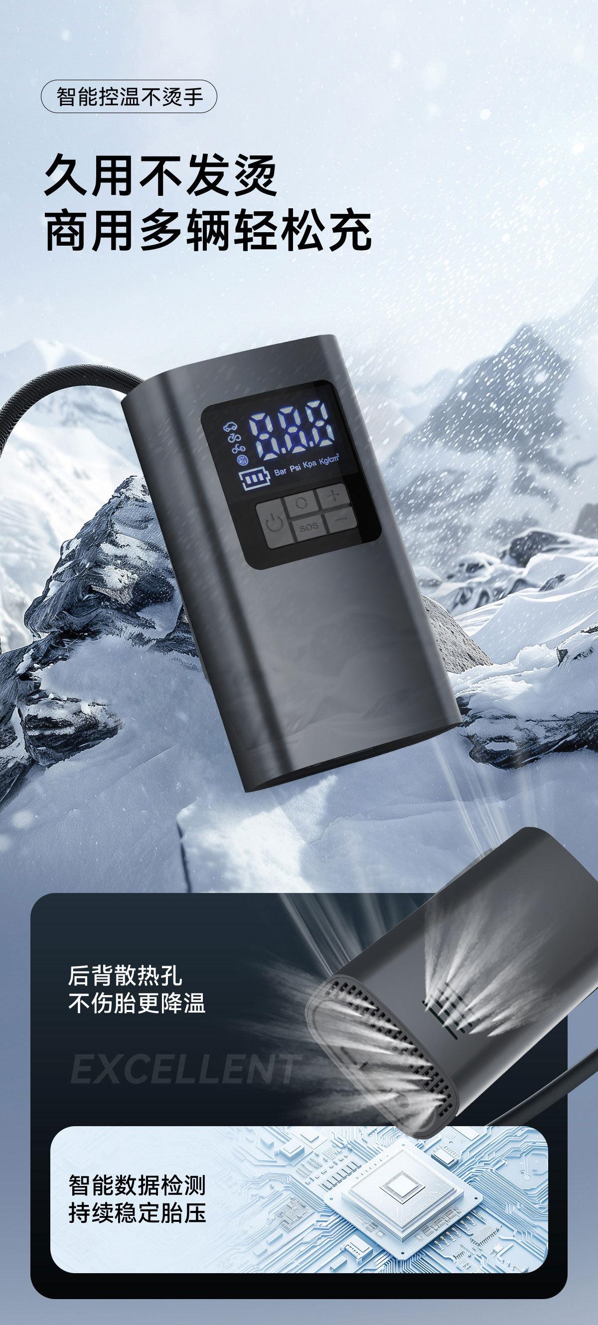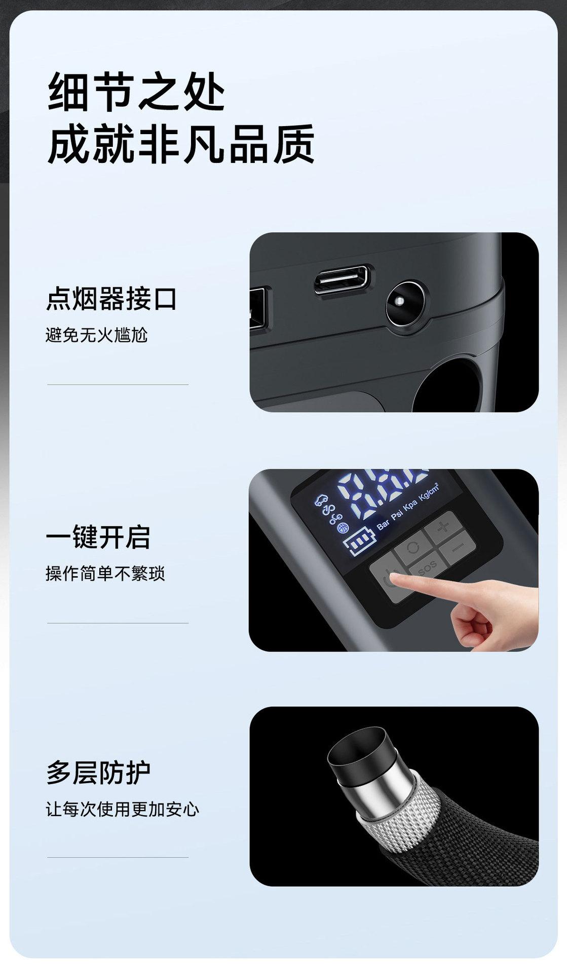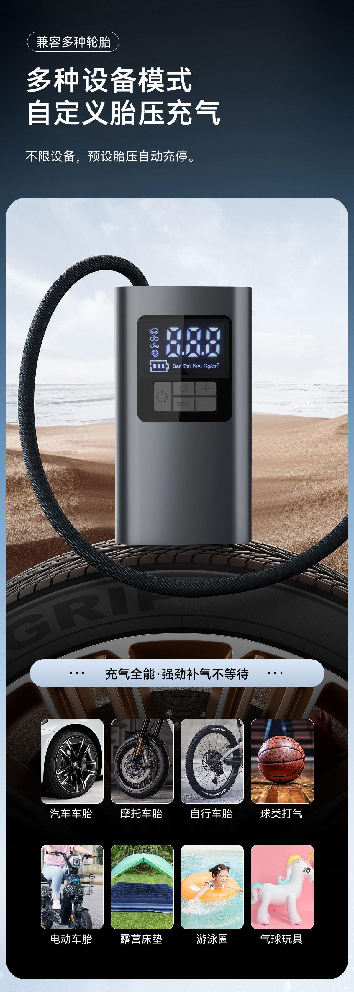 [Exclusivamente para Fornecimento Transfronteiriço] Bomba de Ar para Carro Inteligente Pneu Sem Fio Portátil Bomba de Ar Multifuncional para Pneu de Carro