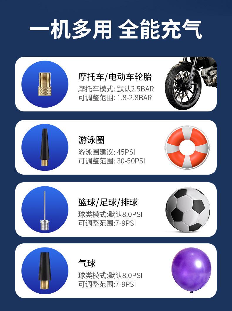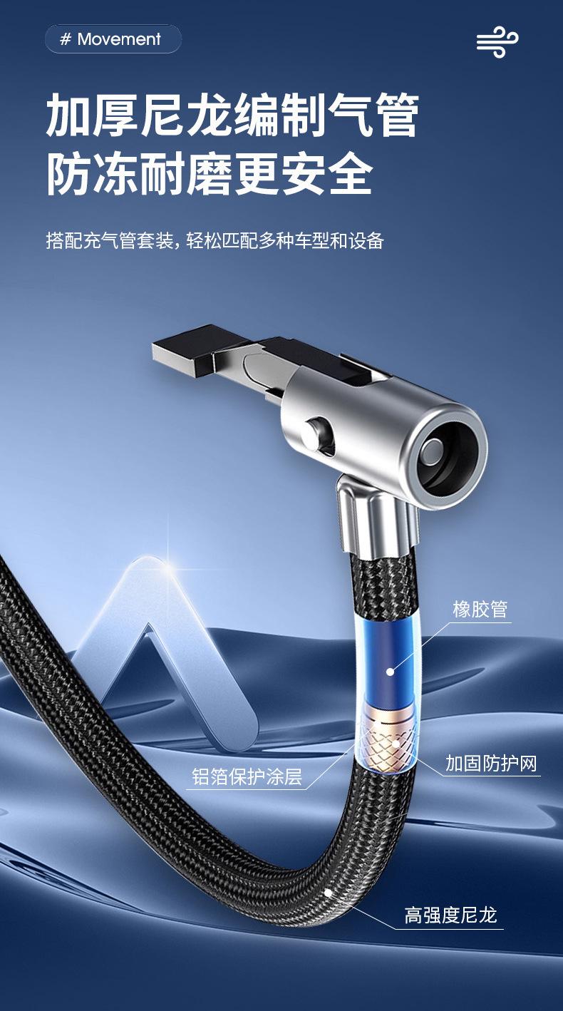 [Lista de acessórios]: Mangueira inflável 1 unidade, braçadeira de bateria 1 unidade, cabo de carregamento TYPE-C 1 unidade, saco de armazenamento 1 unidade, bocal de ar conjunto de 4 peças, manual de instruções 1 unidade
