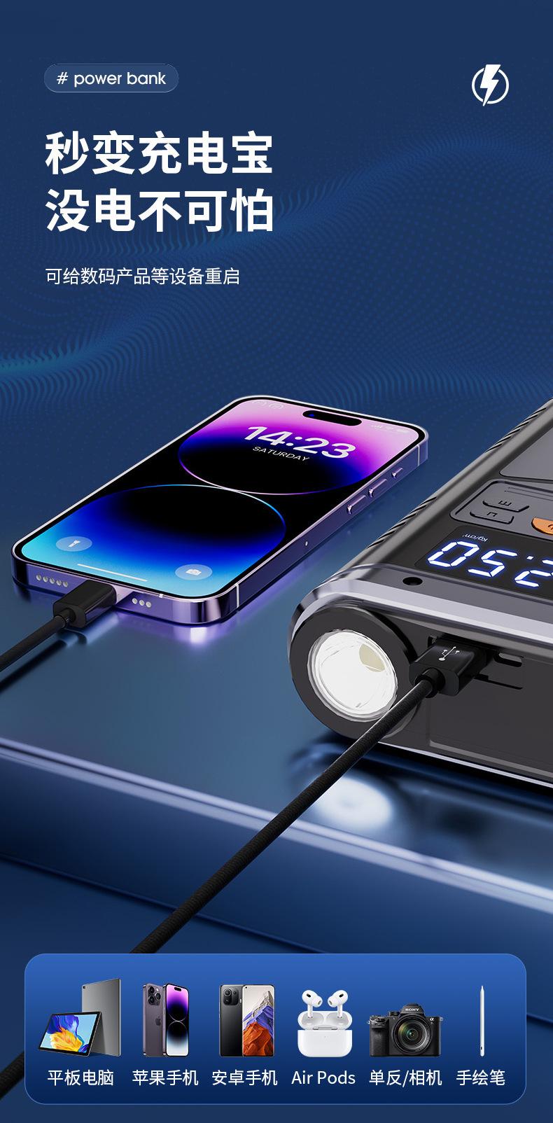 [Nome do produto]: bomba de ar de bateria de lítio sem fio/máquina multifuncional de fonte de alimentação de partida de emergência