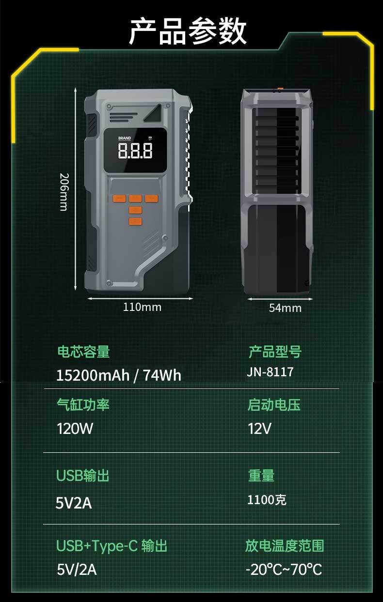 Jn-8116 start power all-in-one machine 8000 mah smart clamp