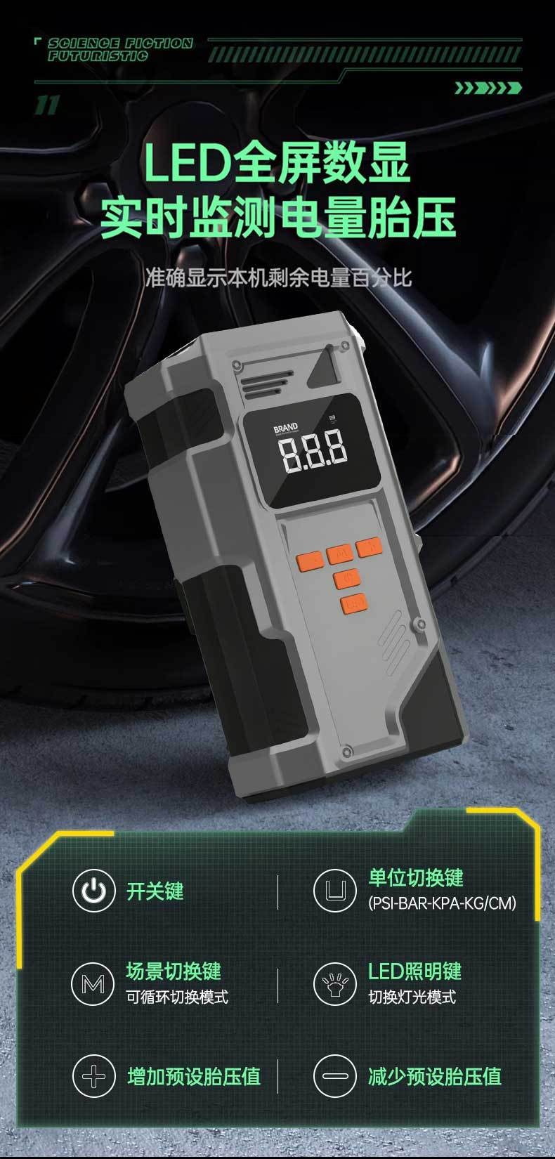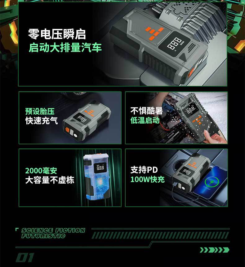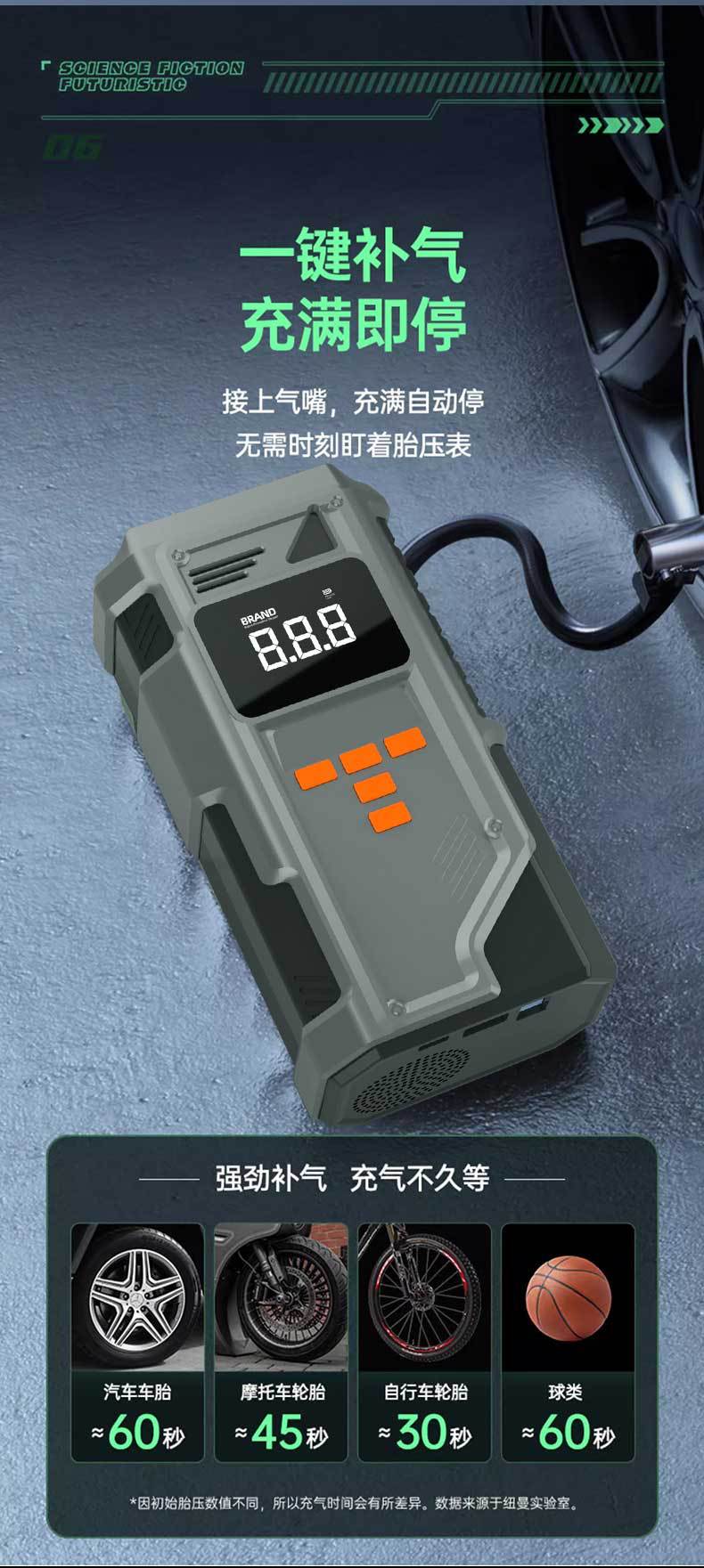 [Exclusivamente para Fornecimento Transfronteiriço] Fonte de Alimentação de Partida de Emergência, Bomba de Pneu Portátil para Carro de Grande Capacidade, Bomba de Ar para Carro