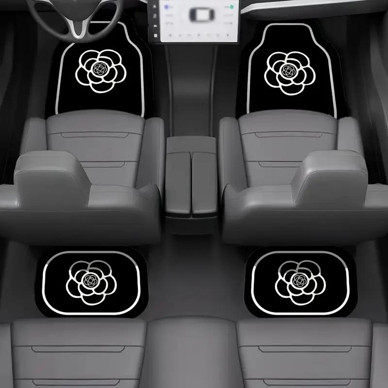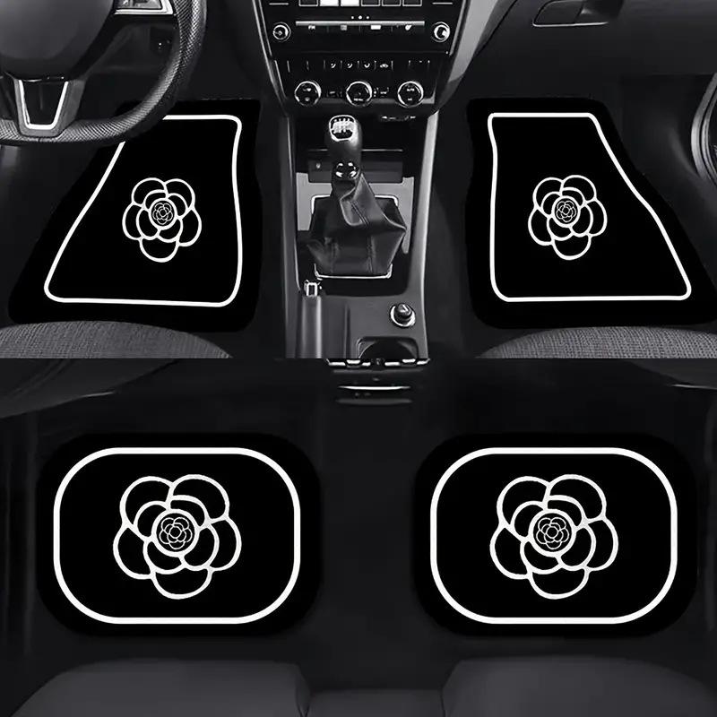 Tapete universal para carro de 4 peças, lavável, proteção para todas as condições climáticas, para todas as estações, padrão de design universal antiderrapante e resistente a manchas