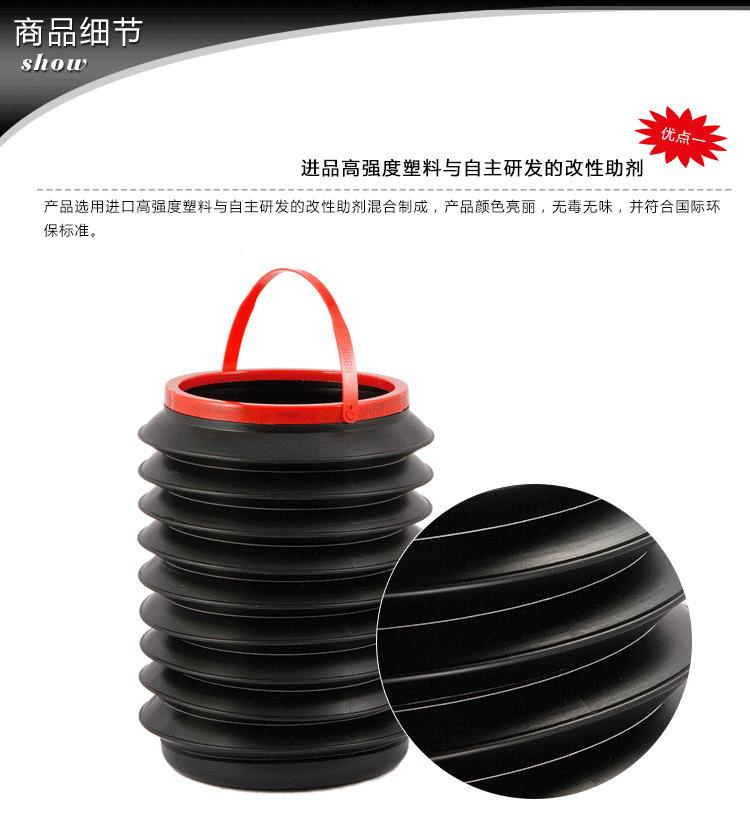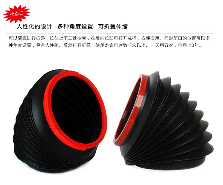 3. O produto adota um design de estrutura dobrável. O cilindro pode ser dobrado quando não estiver em uso, e o espaço de armazenamento é pequeno após a dobra. Quando em uso, o cilindro pode ser puxado para cima de acordo com o volume real necessário; a altura atinge 22 cm (CM) e o volume é de 4 litros (L).