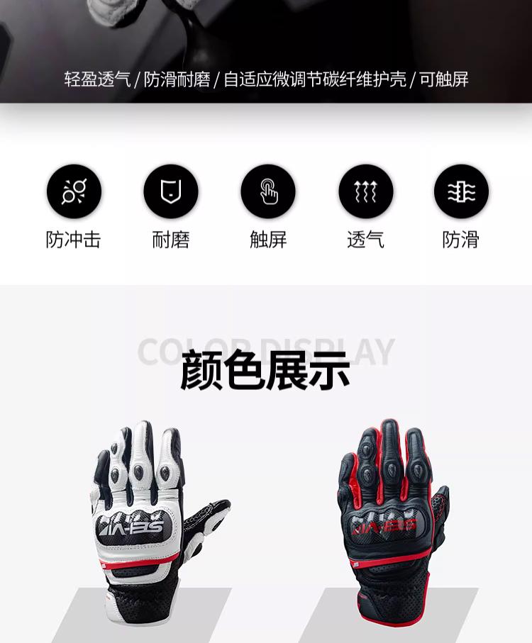 Sei-vi Saiwei Luvas de motocicleta Four Seasons Homens e mulheres Motocicleta Fibra de carbono Equitação Respirável Luvas de cavaleiro resistentes a quedas