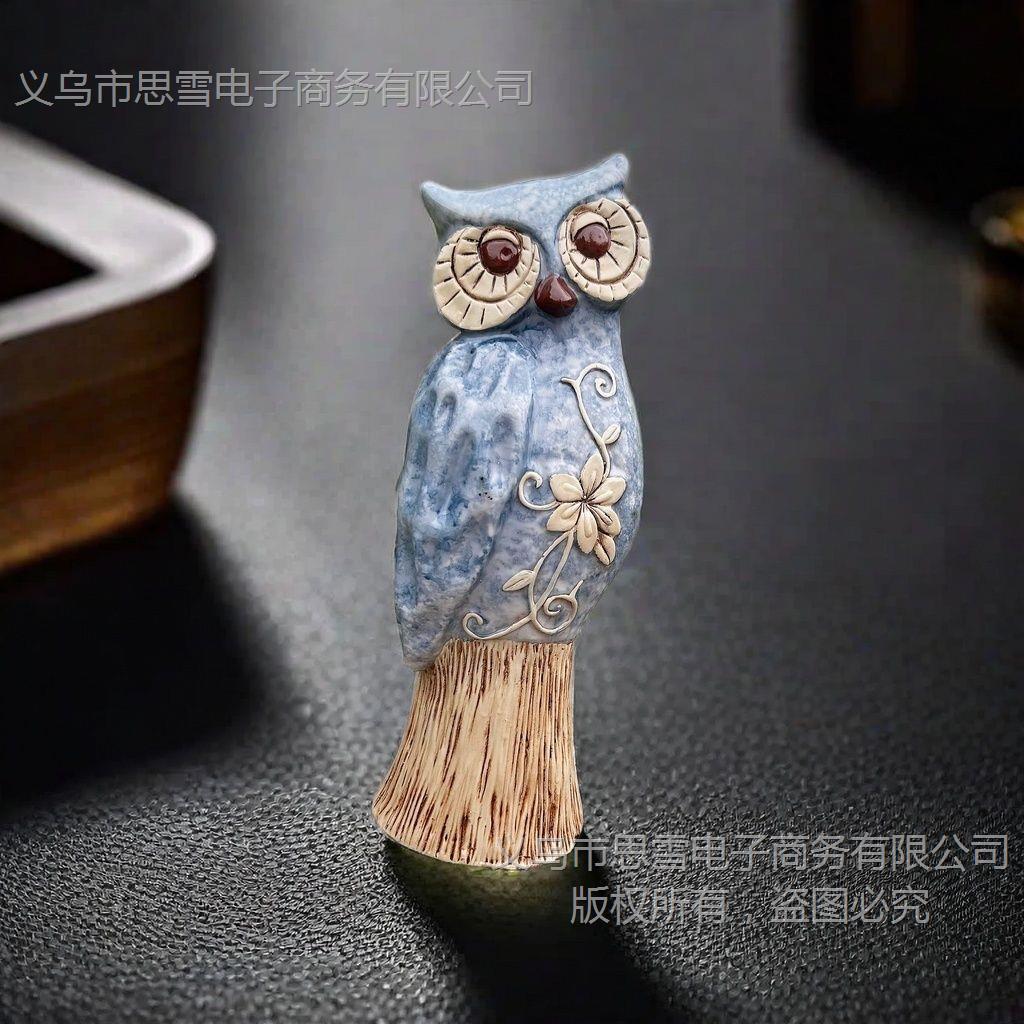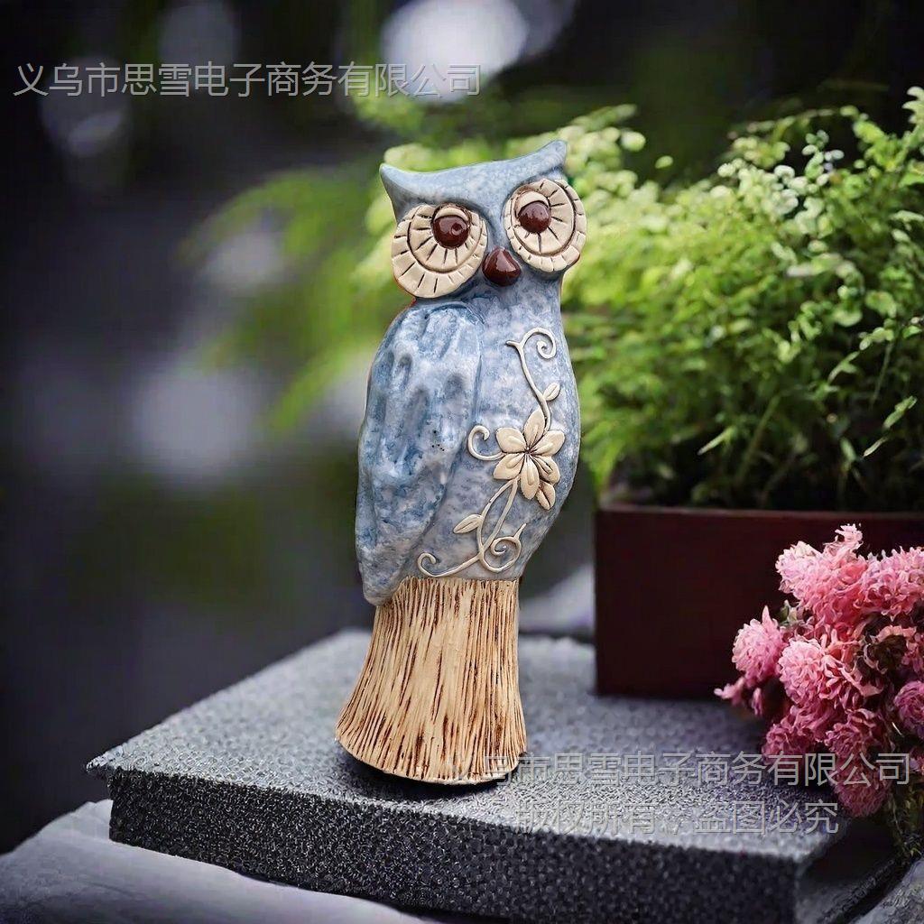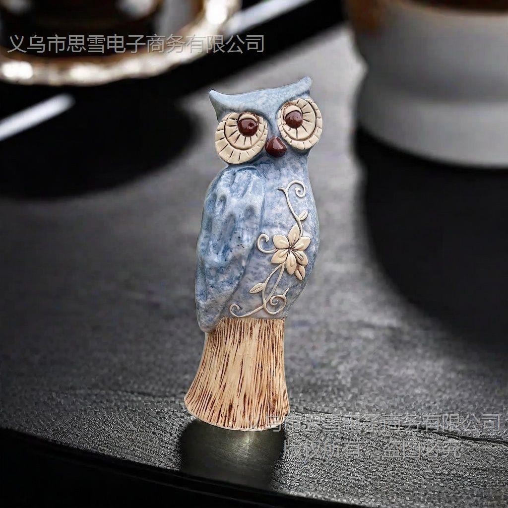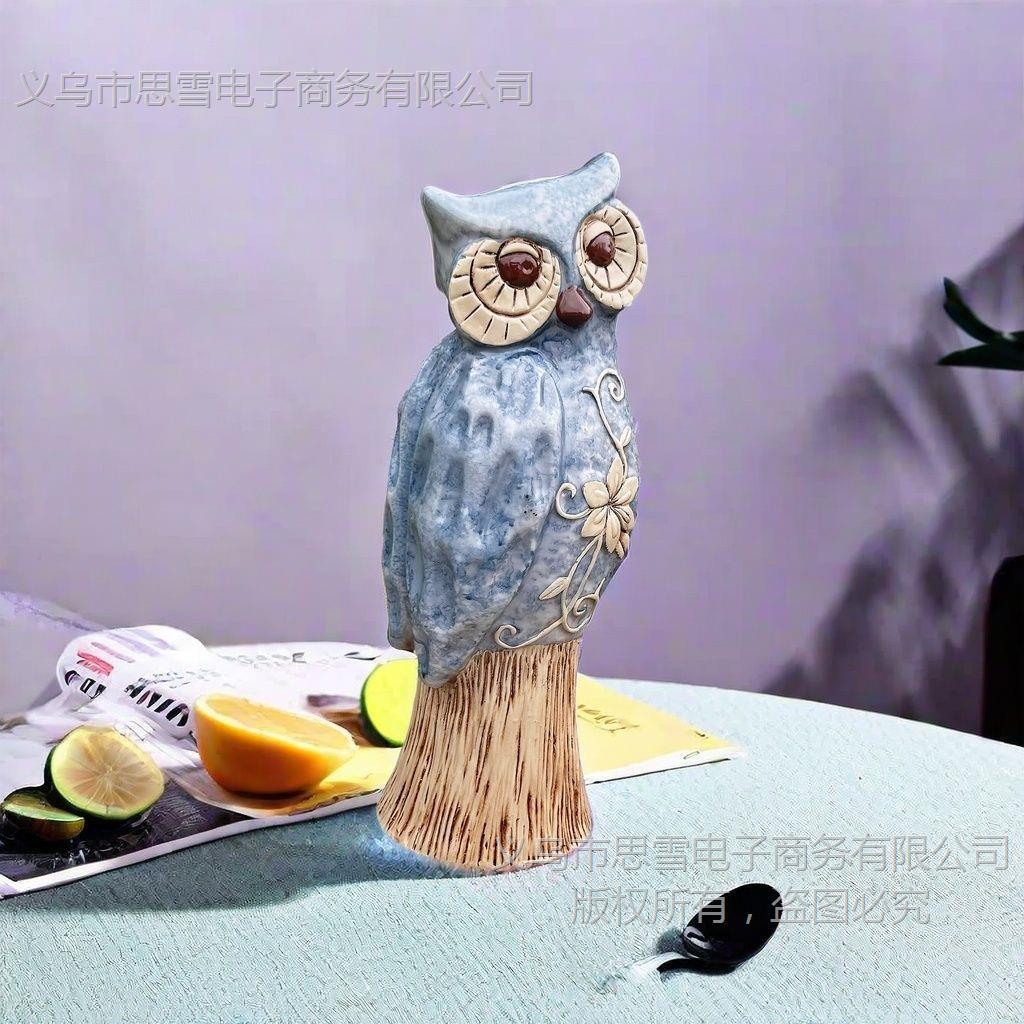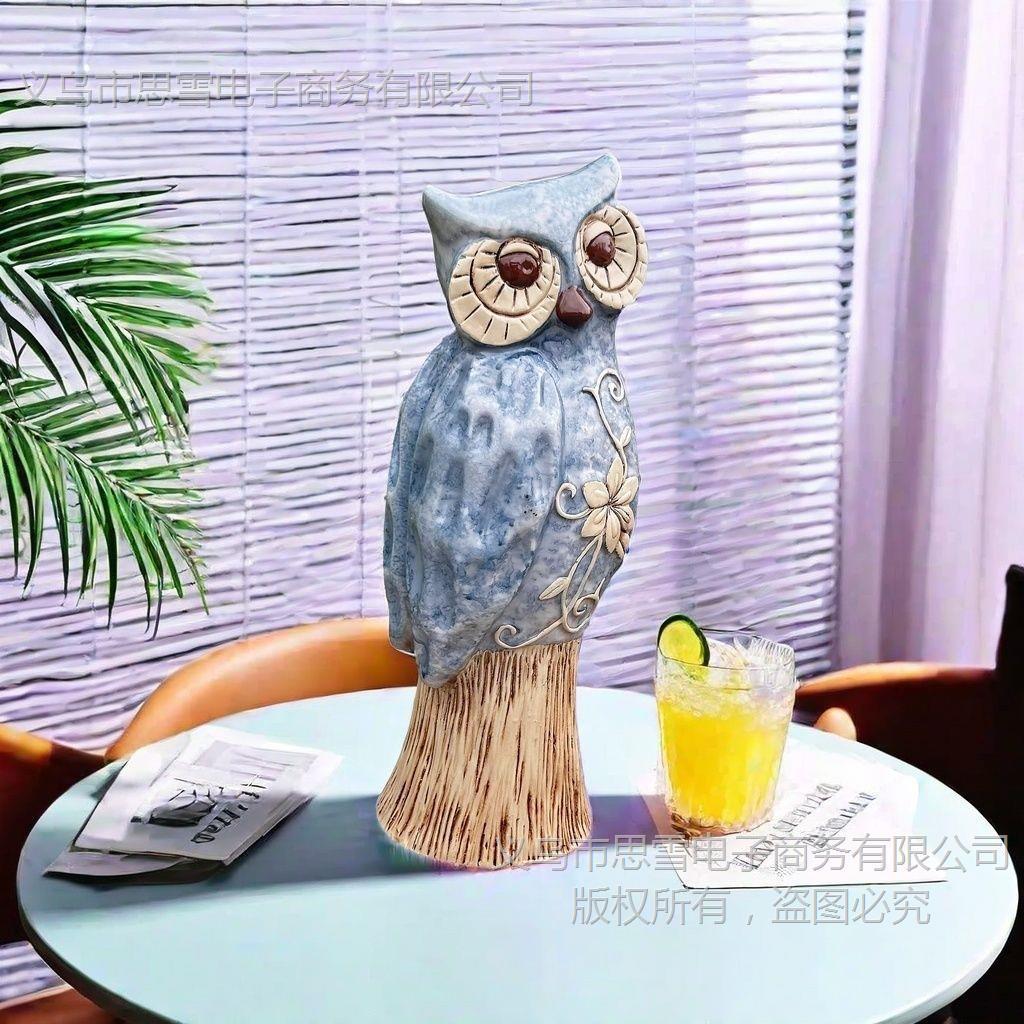 Compre Americano Grande Coruja Azul Resina Artesanato Enfeites Criativos Decorações para Casa Sala de Estar Enfeites de Mesa no atacado no Joom.pro