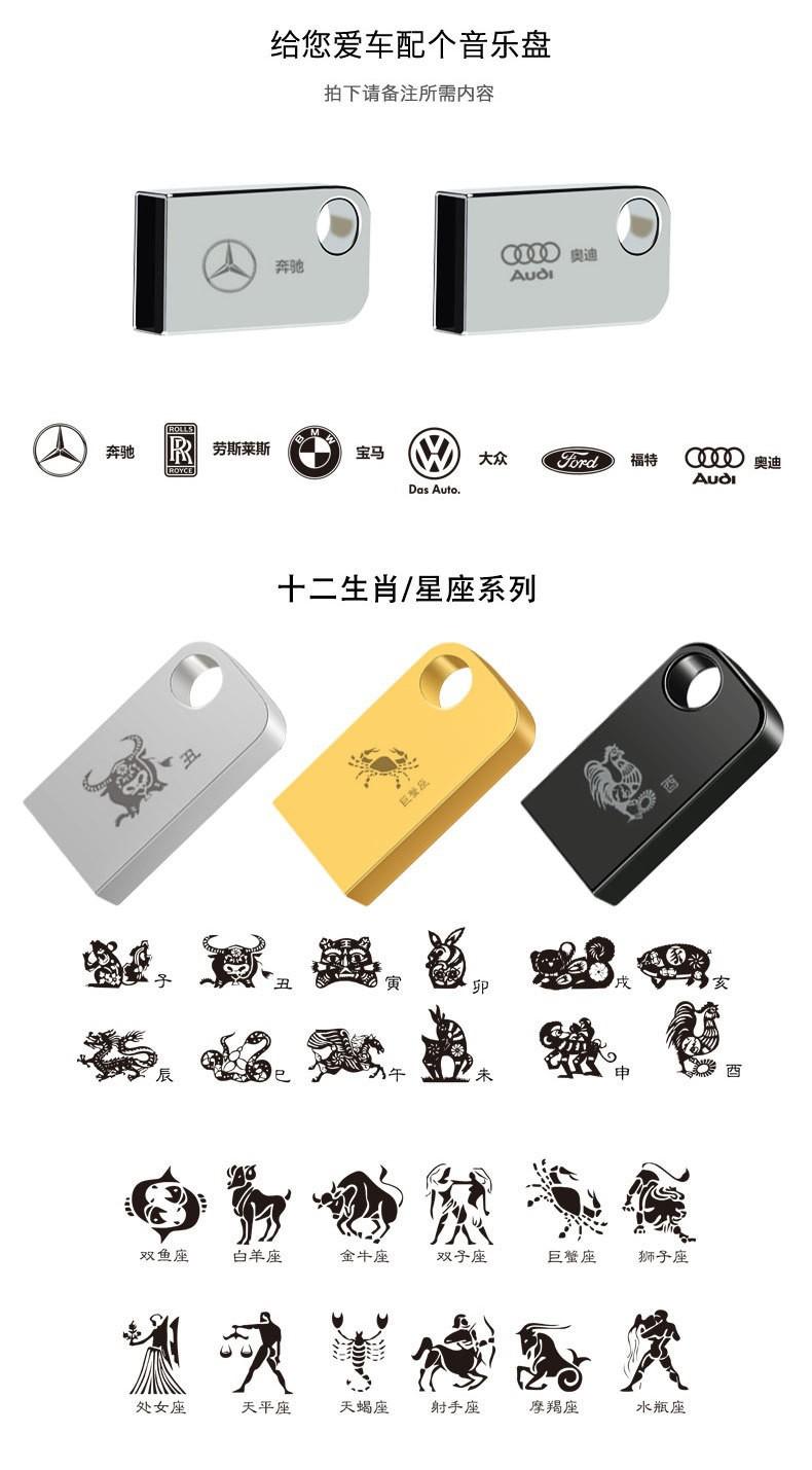 Disco U de música de carro de alta velocidade 32G Disco Flash Móvel 16G logotipo de letras Disco de sistema de computador de 64 GB Publicidade U disco