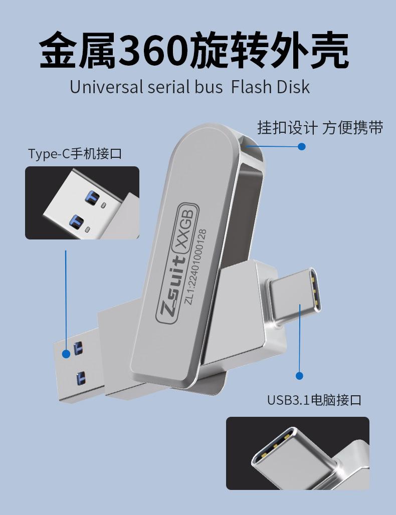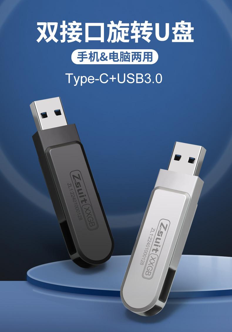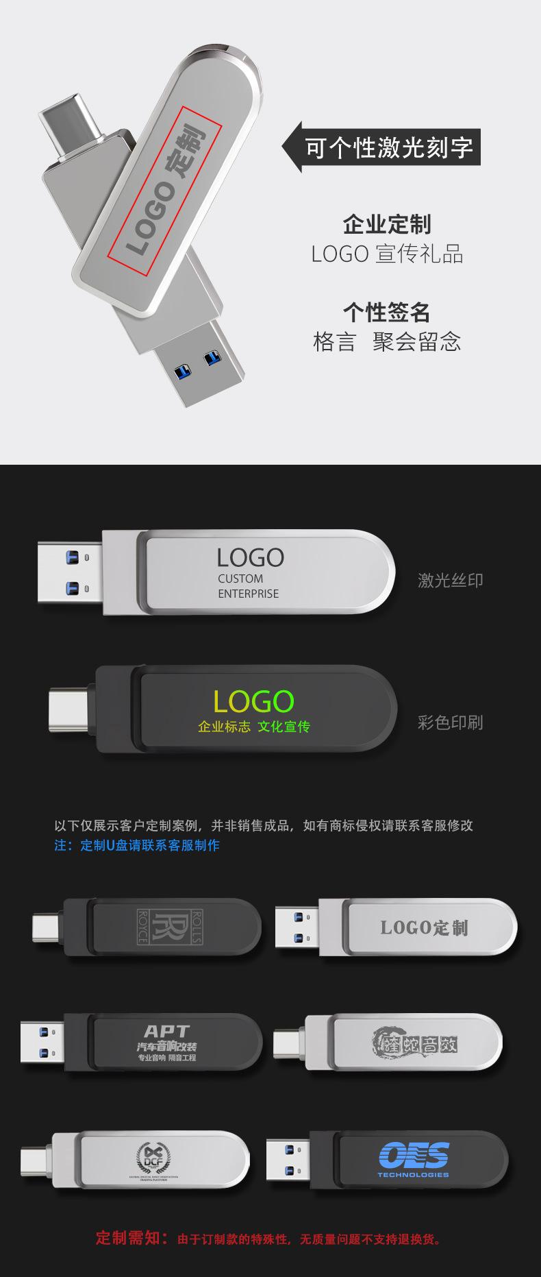 Telefone móvel U disco tipo-c cabeça dupla rotativa U disco 128g grande capacidade 256G3.0 carro USB armazenamento móvel