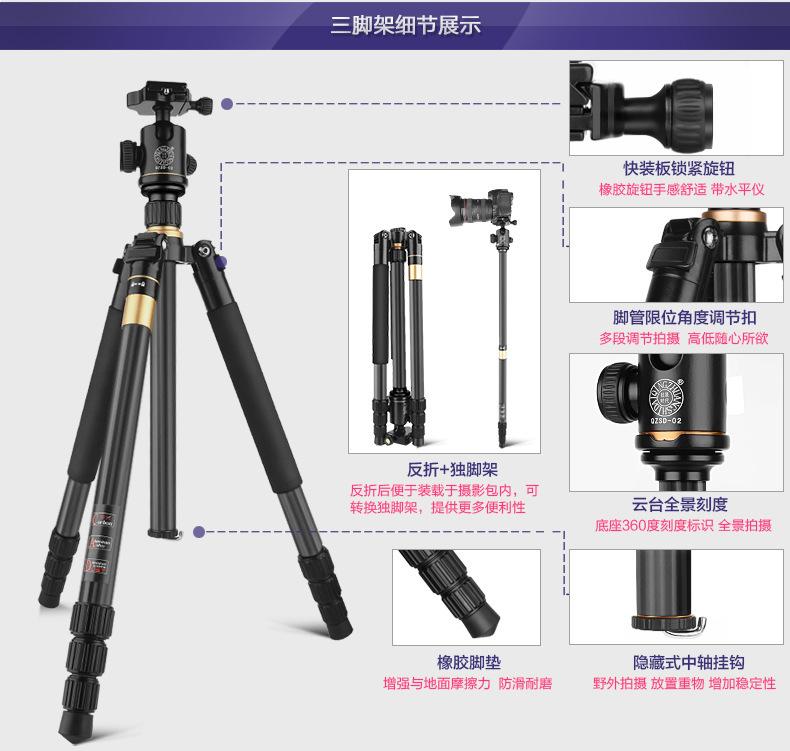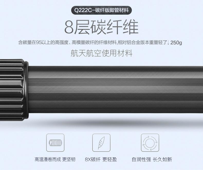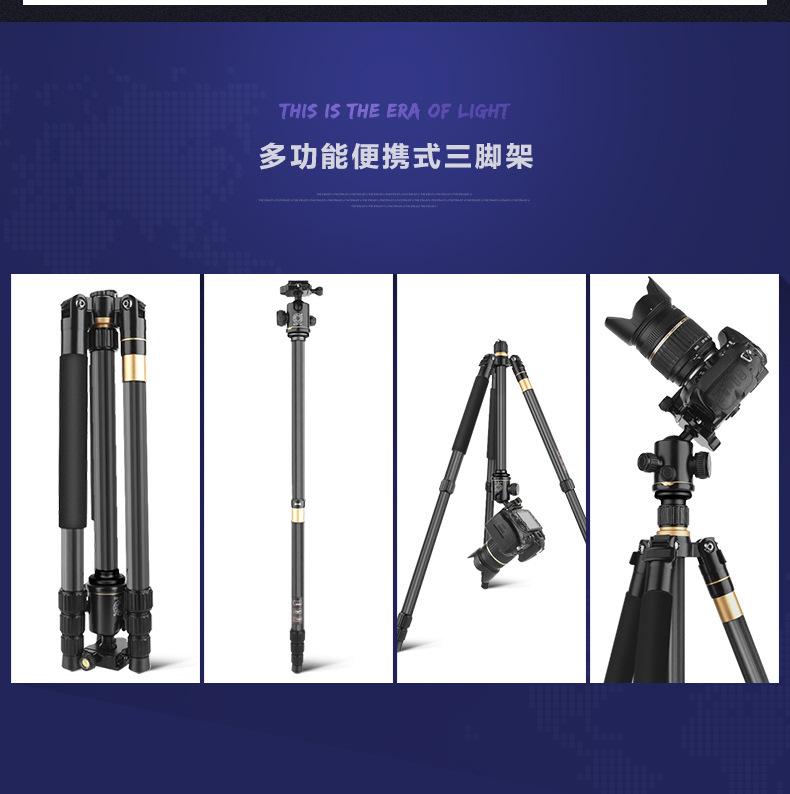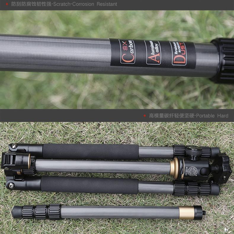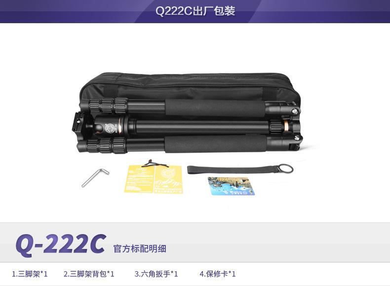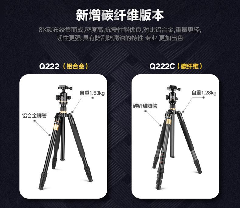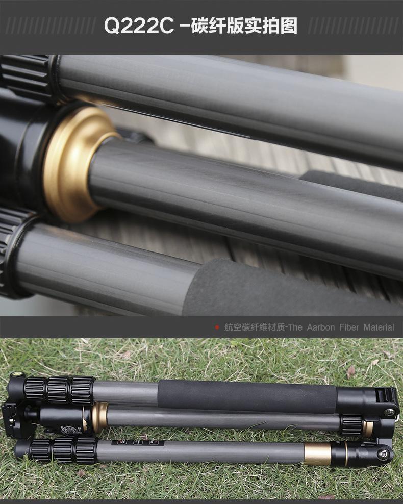 Tripé leve para câmera SLR Q222C, suporte triangular portátil de fibra de carbono para fotografia e viagem