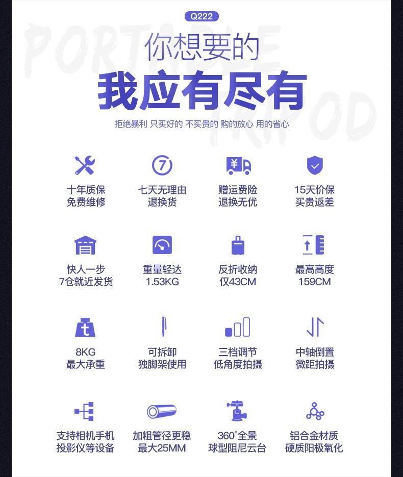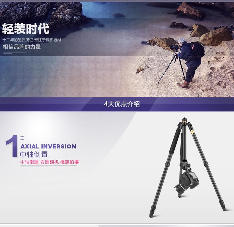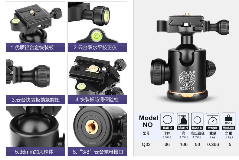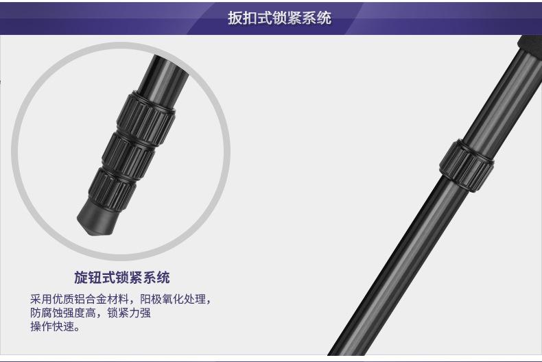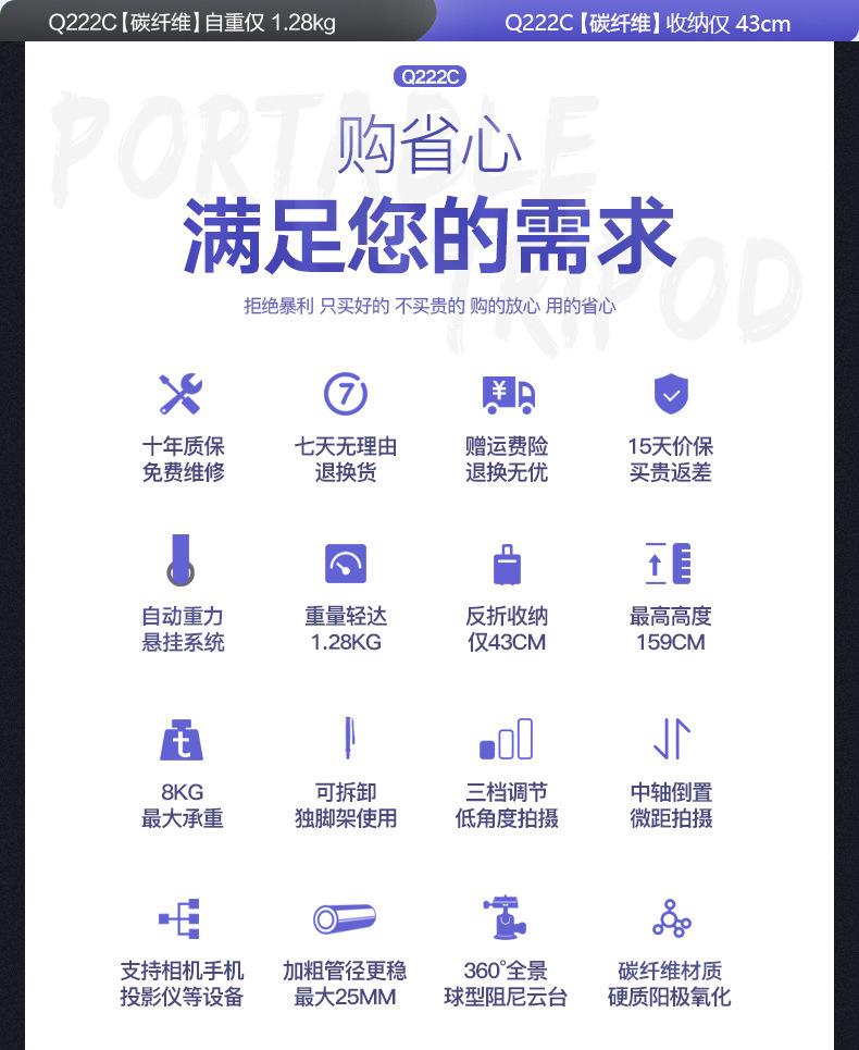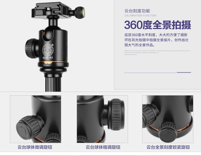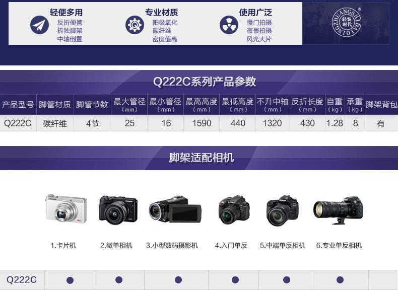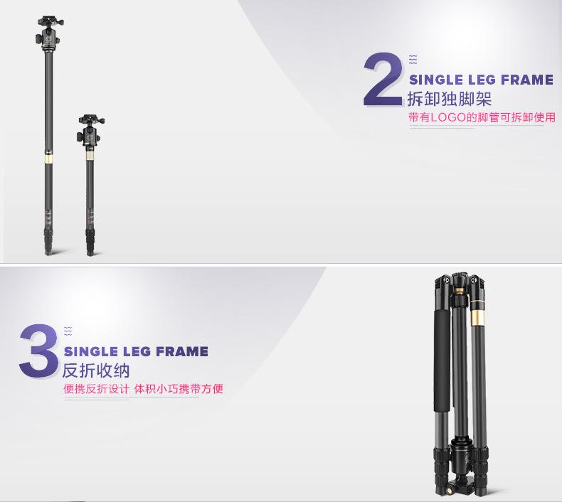 Tripé leve para câmera SLR Q222C, suporte triangular portátil de fibra de carbono para fotografia e viagem