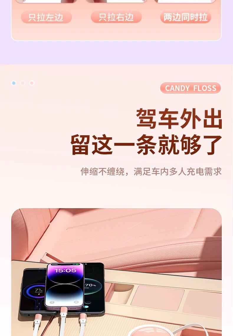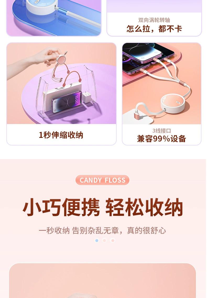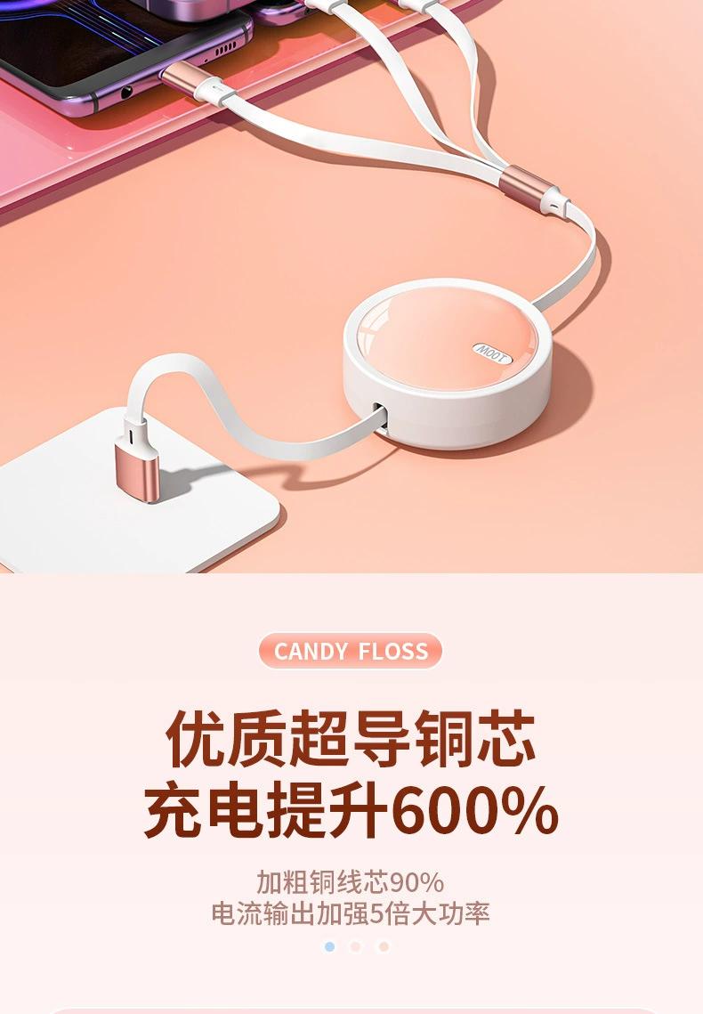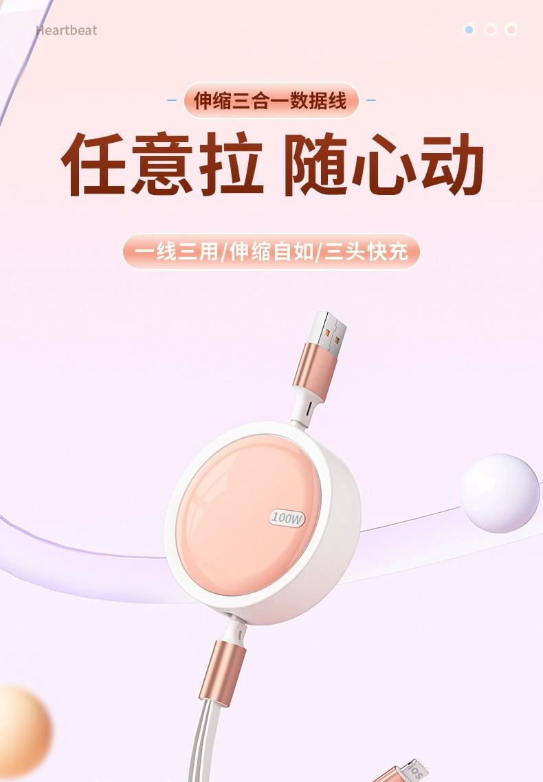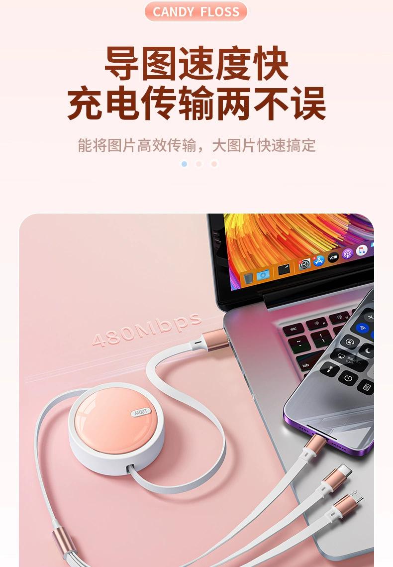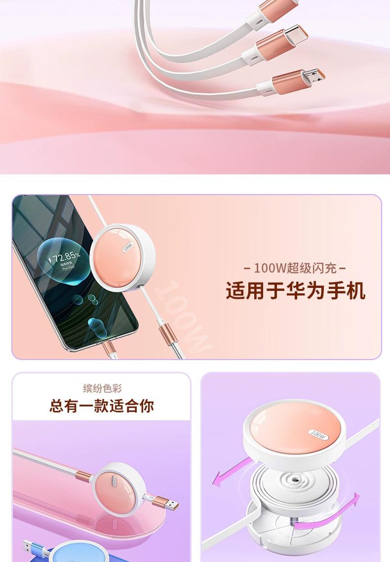 Novo Retrátil Um-Para-Três Adequado para Apple Huawei Android Porta C 66W Super Carregamento Rápido Tipo-C 15