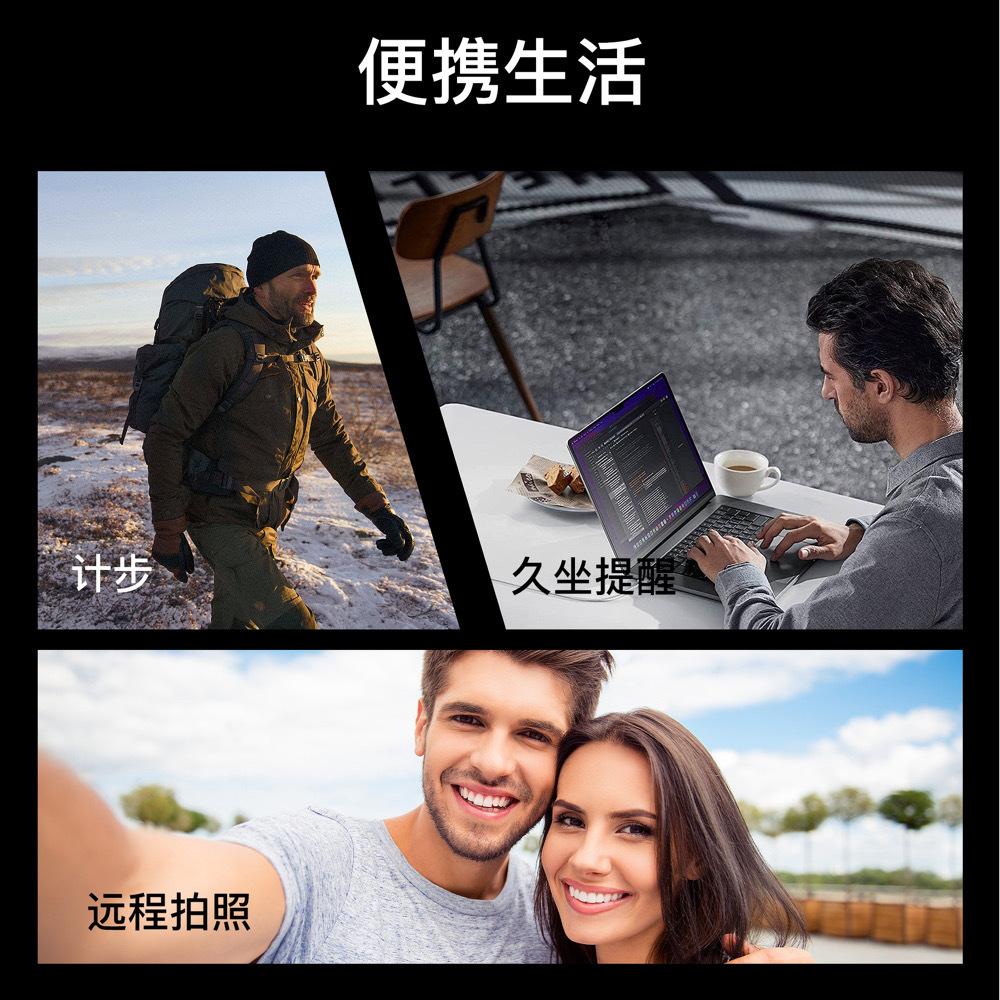Take photos, Step counting, Heart rate monitoring, Social entertainment, Bluetooth call, Smart reminder