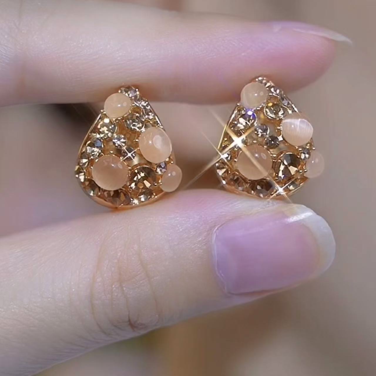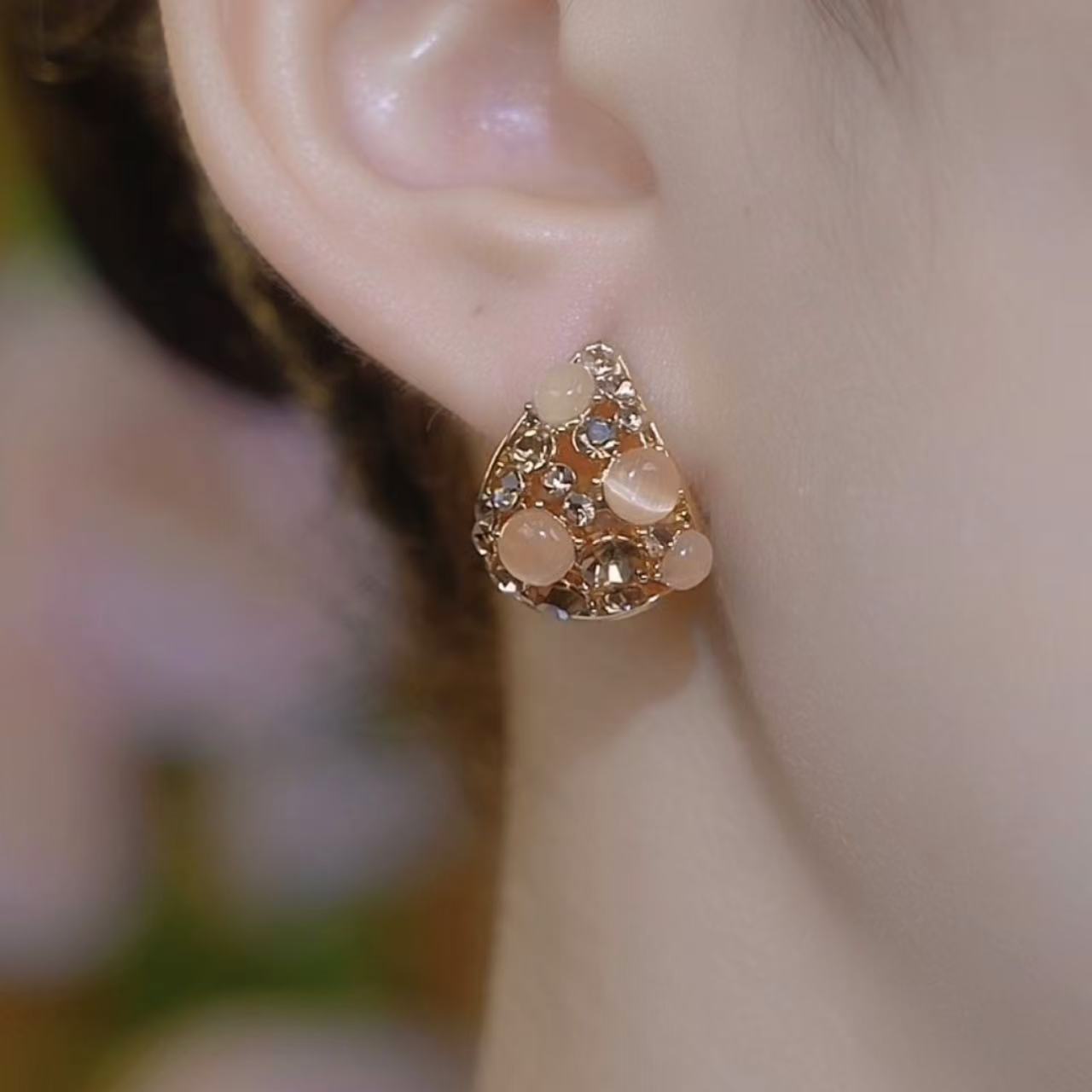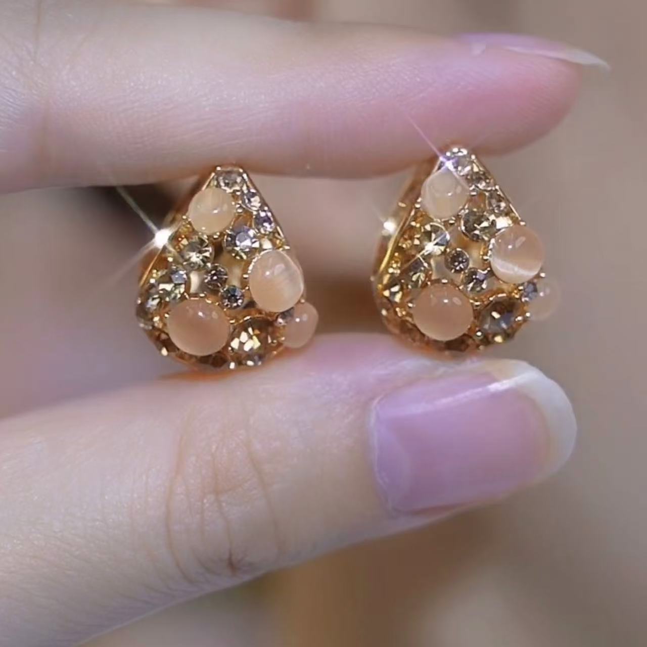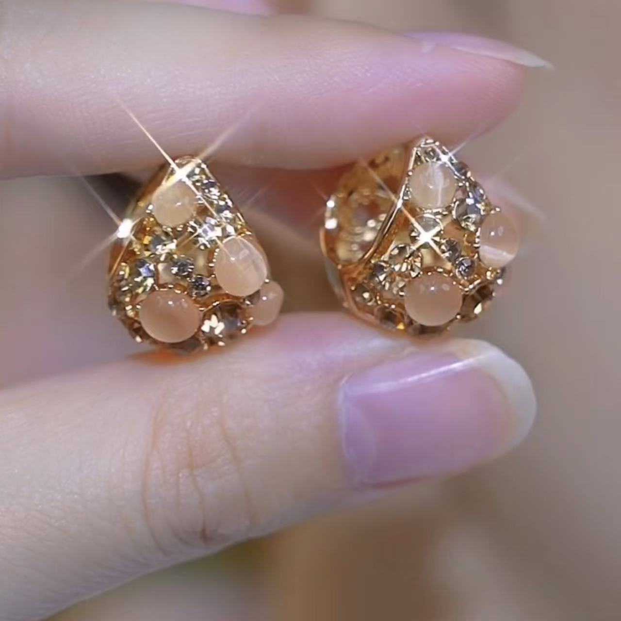 Brincos Cesta de Flores de Pedra Olho de Gato para Mulheres 2024 Novo Design de Nicho Brincos de Luxo Leve Acessórios de Orelha Elegantes