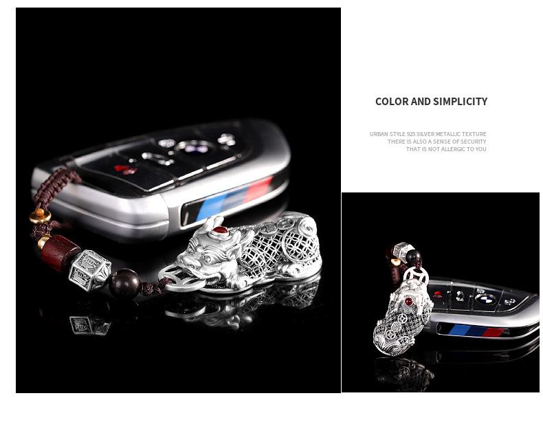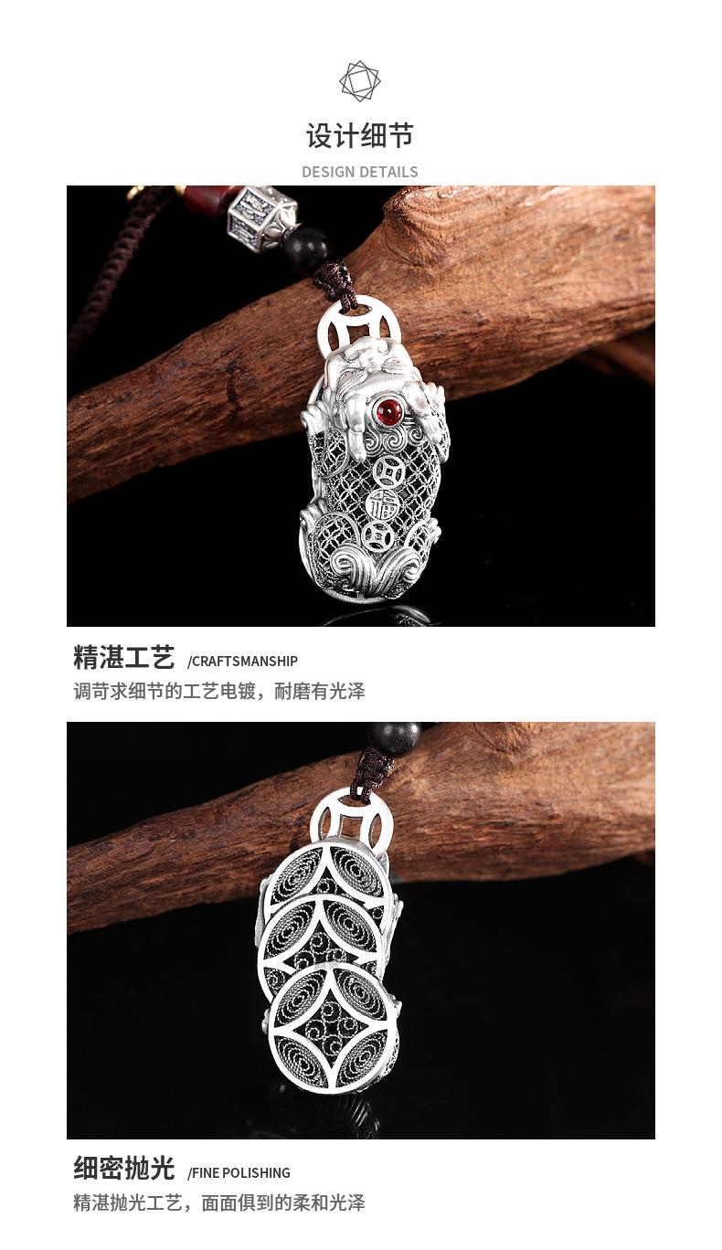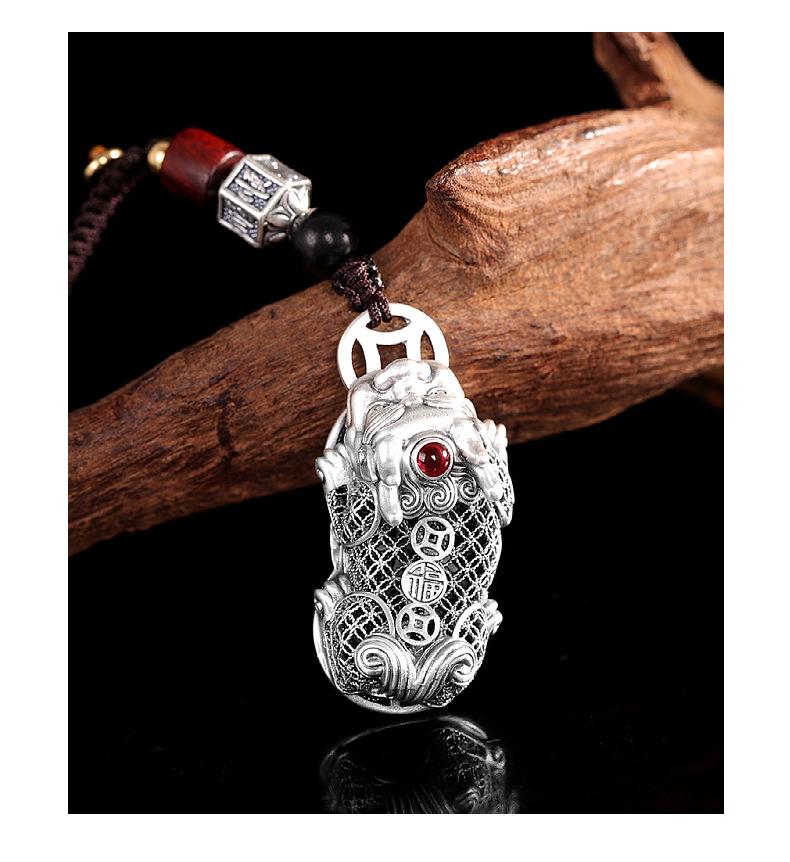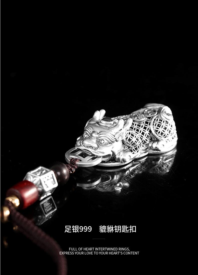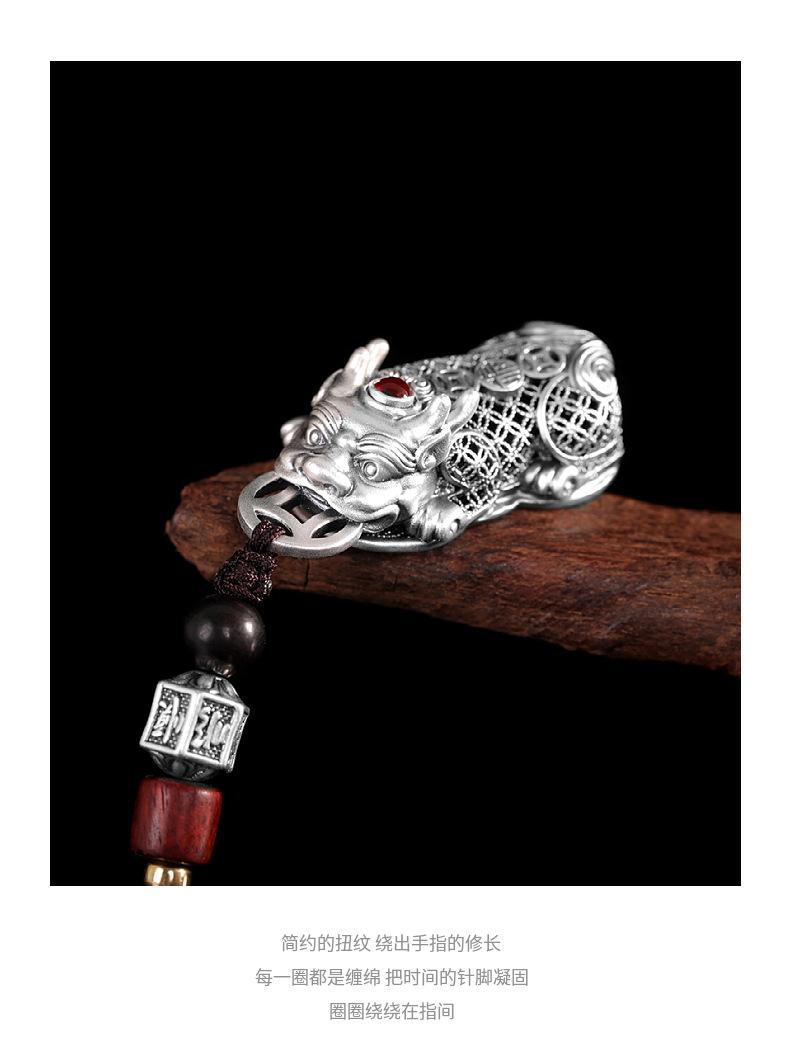 Compre Personagem Prata Pé Prata 999 Vintage Oco Pixiu Pingente Personalizado All-match Moda Unissex Nicho Pendurado Ornamentos no atacado no Joom.pro