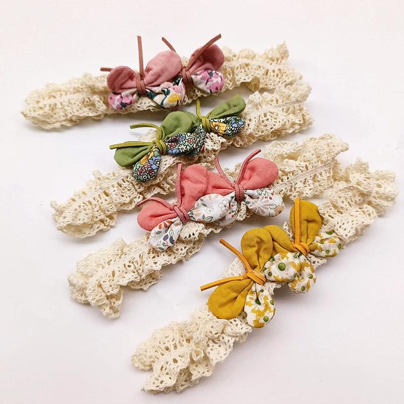Faixa de cabelo de borboleta de algodão estilo coreano para bebês, faixa de cabeça elástica para crianças, acessório de cabelo fofo de flor, princesa cem dias