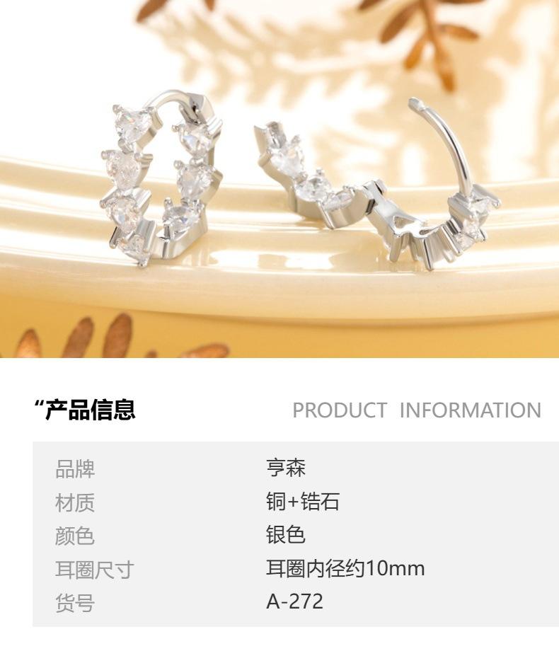 Henson Light Luxury Copper Set Love Zircon Brincos de fivela de orelha Brincos de menina doce Brincos Brincos