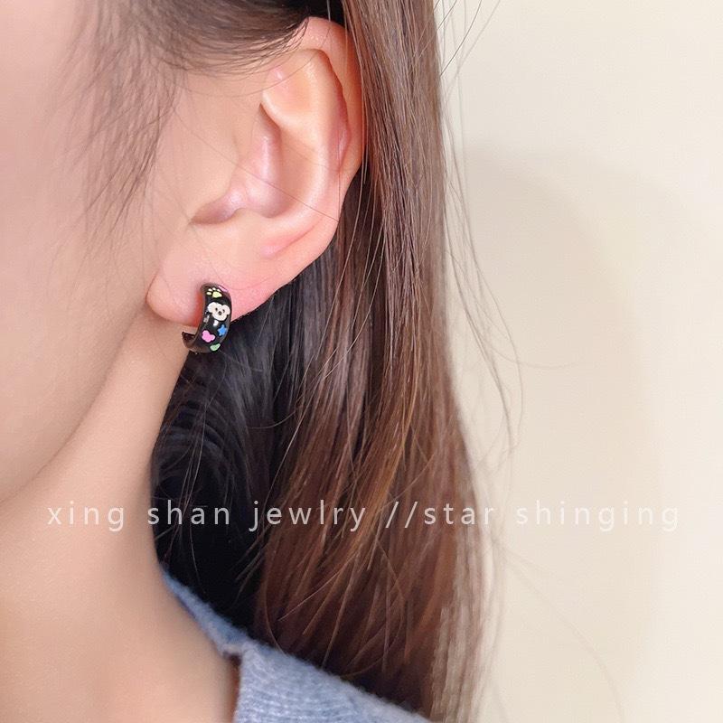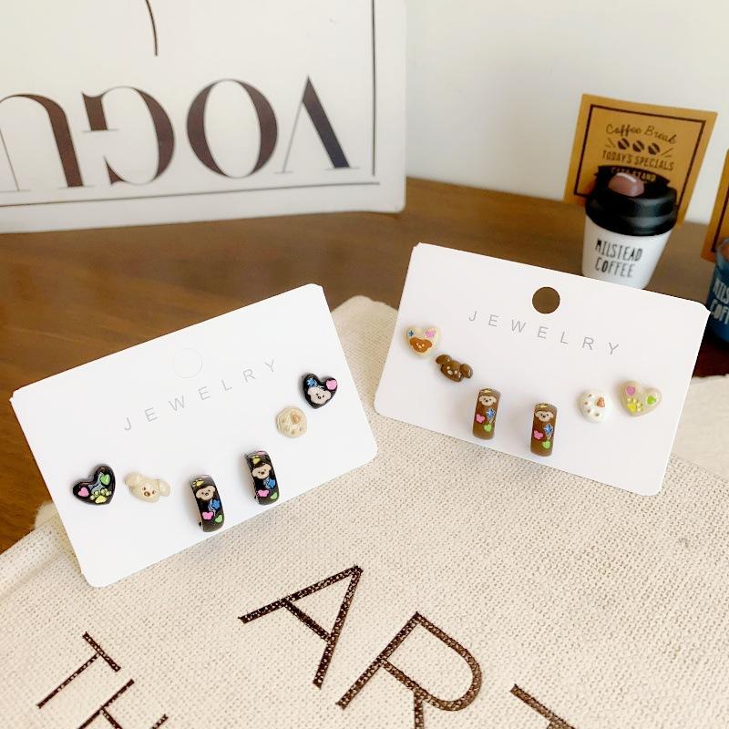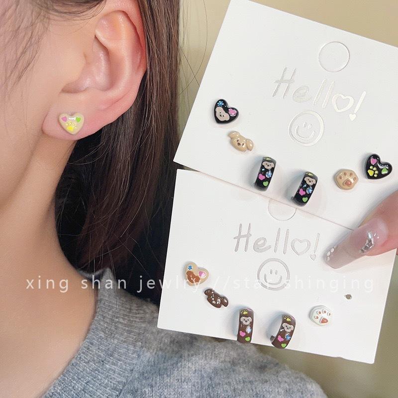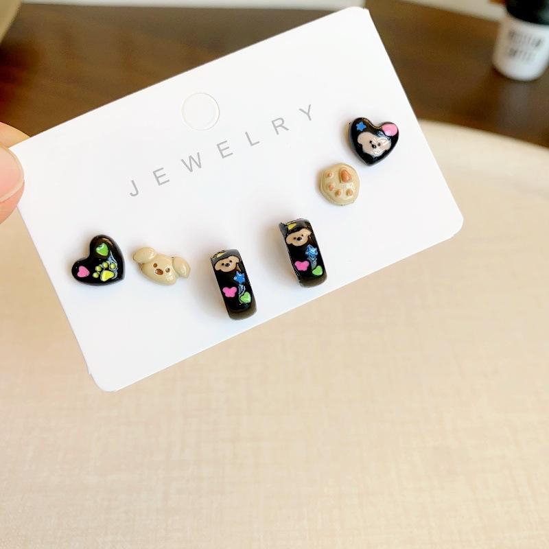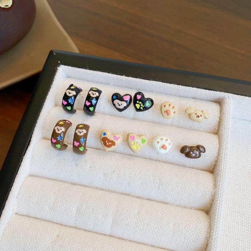 Brincos de pino de prata fofos de amor de cachorro femininos outono e inverno novos brincos de terno de desenho animado design pequeno requintado brincos de sentido