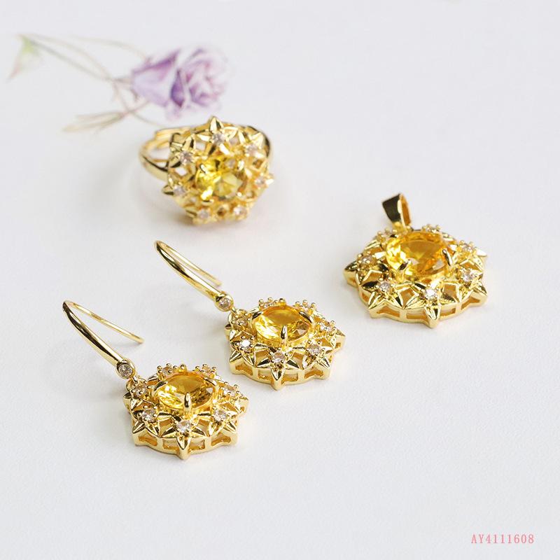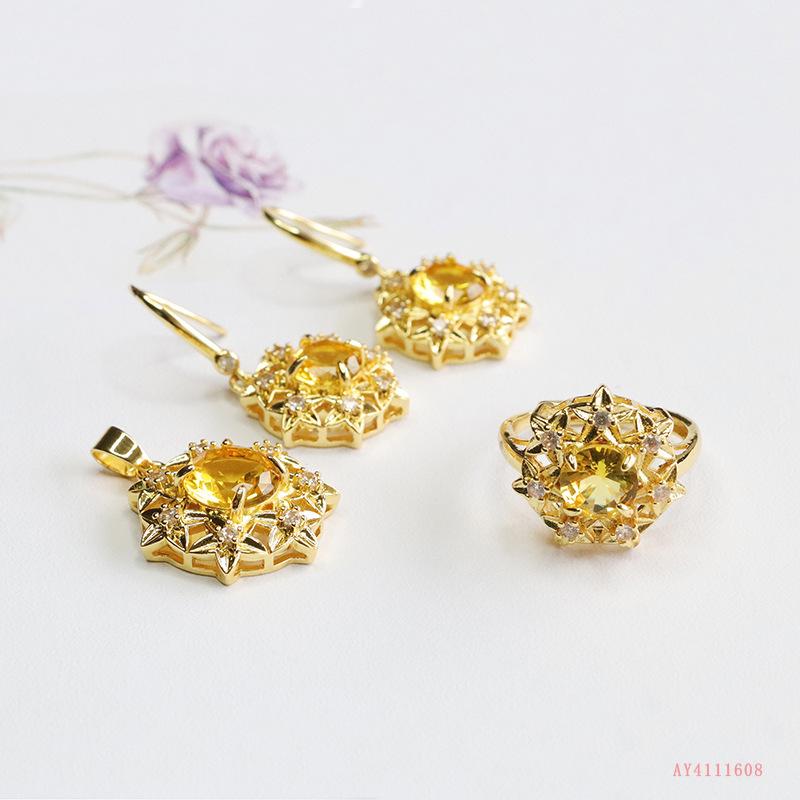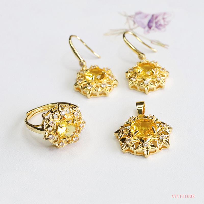 Compre Love Yu cross-border amarelo quente vidro terno simulação citrino colar pingente brincos atacado AY4111608 no atacado no Joom.pro