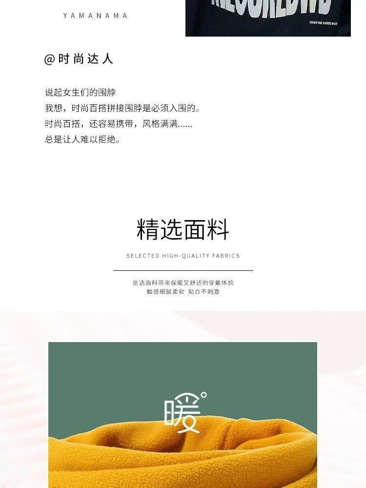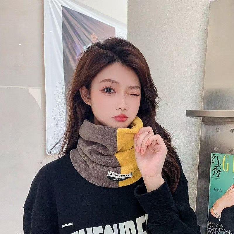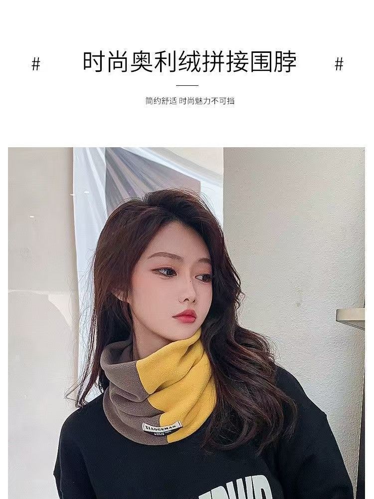 Conjunto de gola de veludo Ollie quente para inverno, camada dupla, espessado, ciclismo ao ar livre, moderno, masculino e feminino, combinando com cores, cachecol à prova de frio