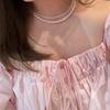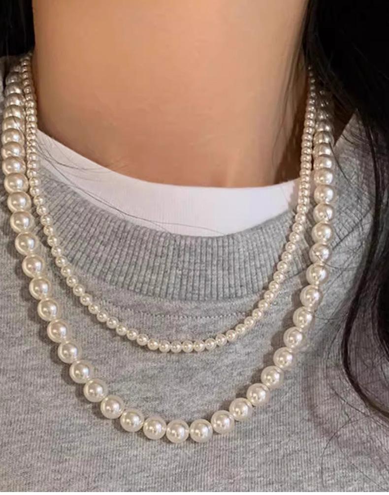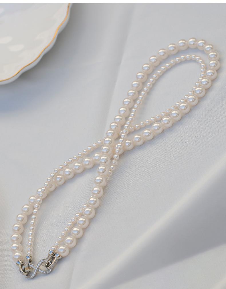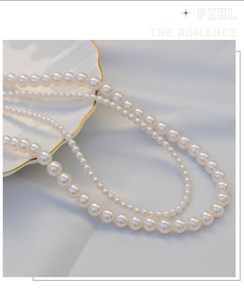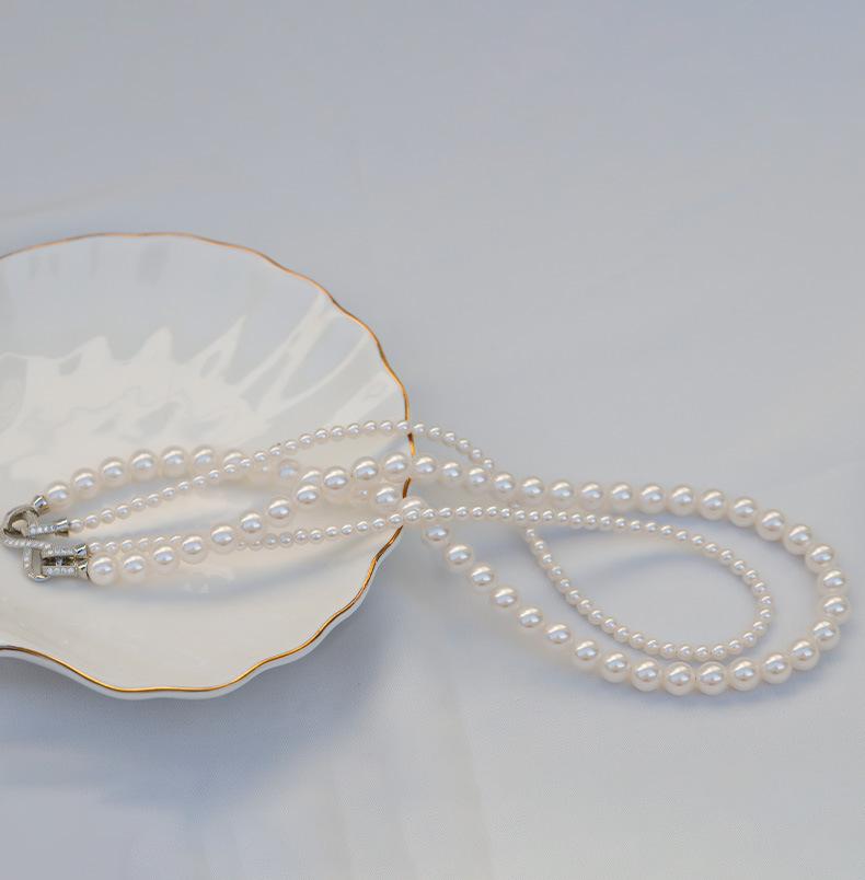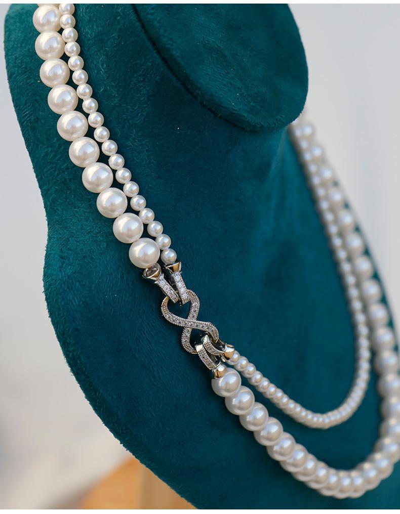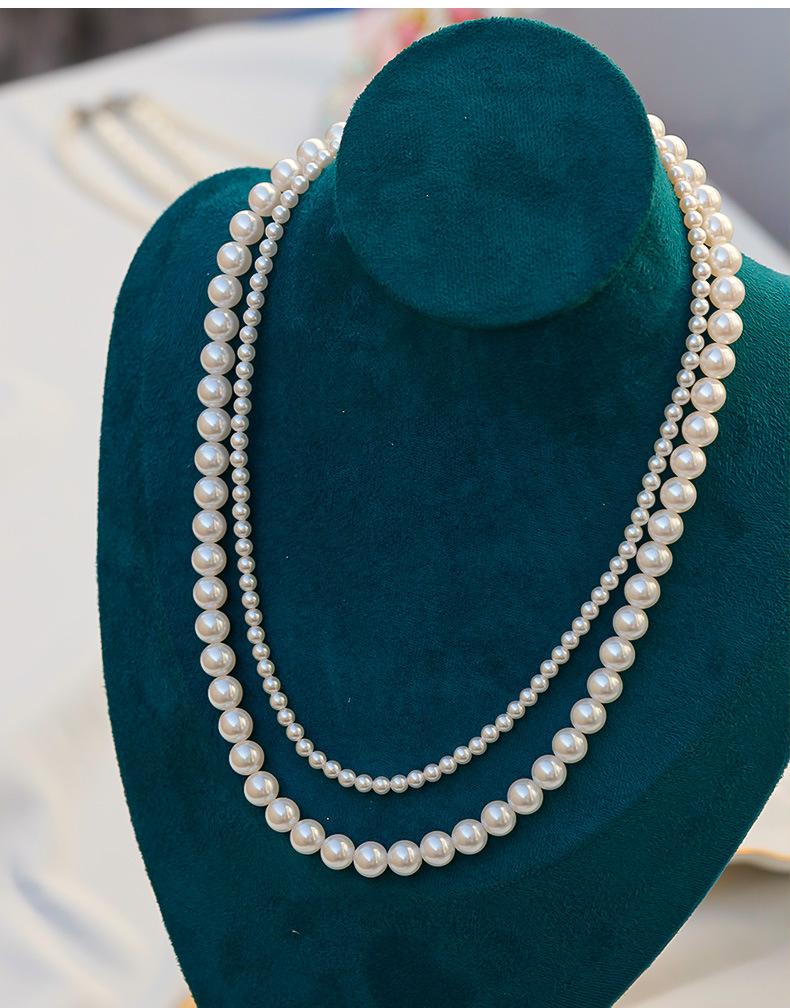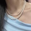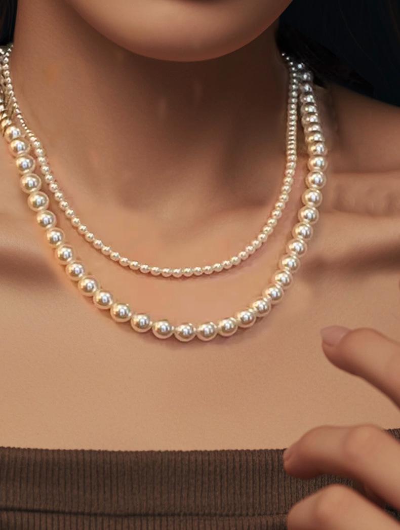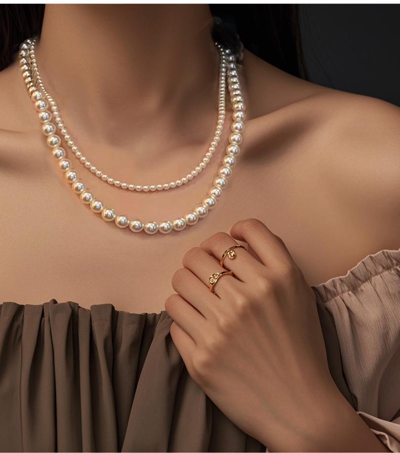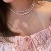 Colar de contas feminino leve de luxo nicho empilhado camada dupla colar de pérolas pequenas contas de arroz colar de pérolas feminino corrente de clavícula atacado