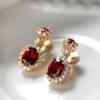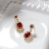 [Retro Dance Club] Brincos vermelhos estilo palácio retrô francês, repelente de mosquitos, placa de incenso, clipe de orelha, brincos femininos, outono e inverno