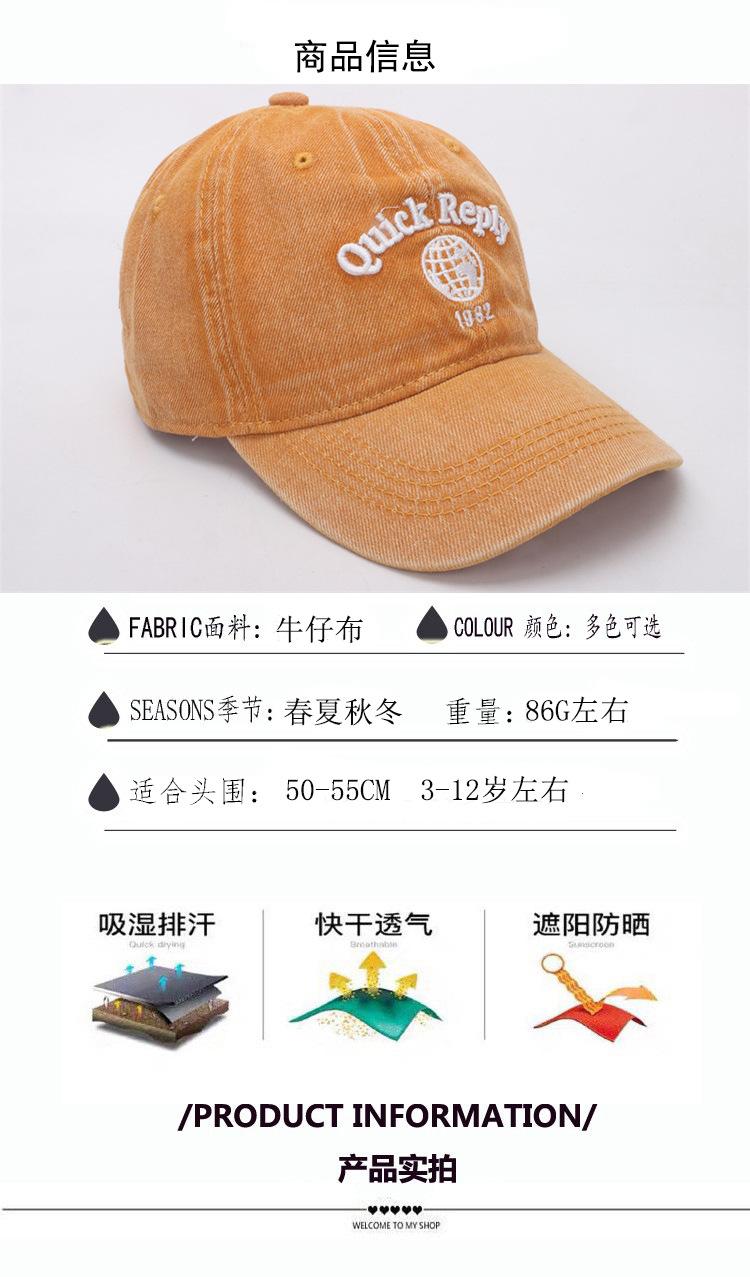 Compre Primavera 2024 chapéu de comércio exterior denim boné de beisebol infantil chapéu de sol de verão boné de pico de letra infantil médio e grande no atacado no Joom.pro