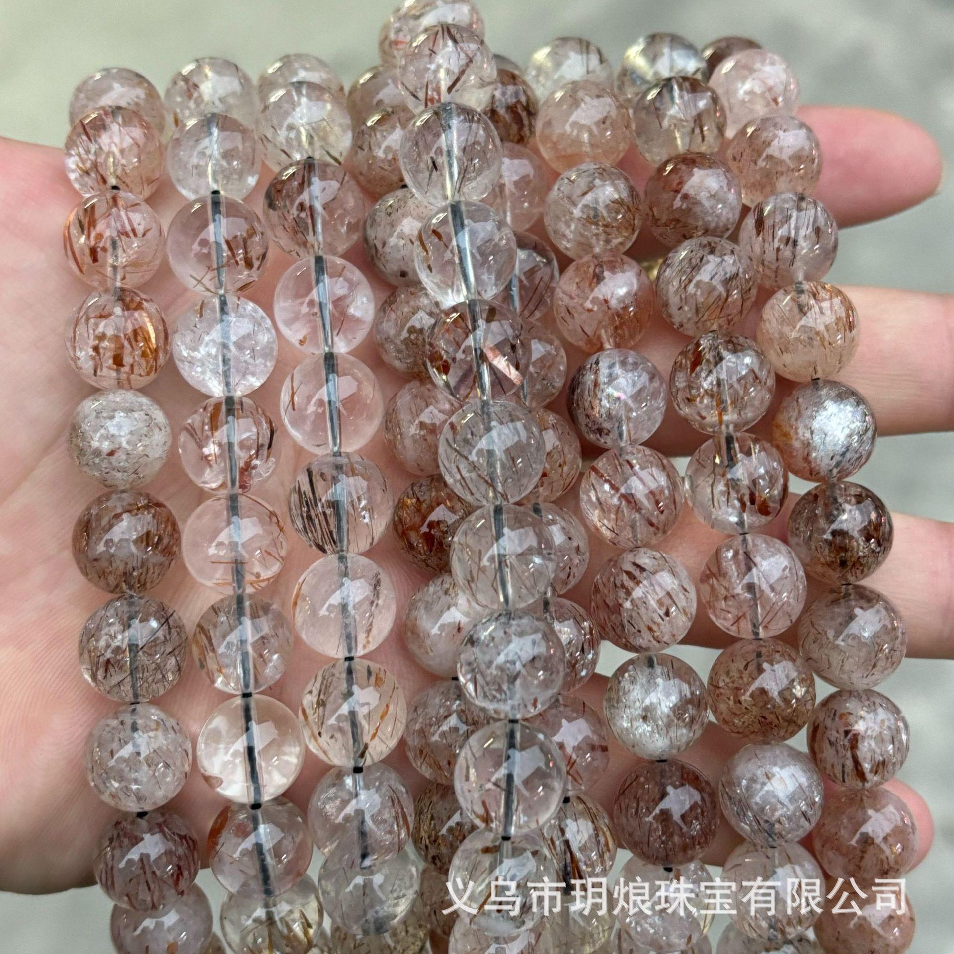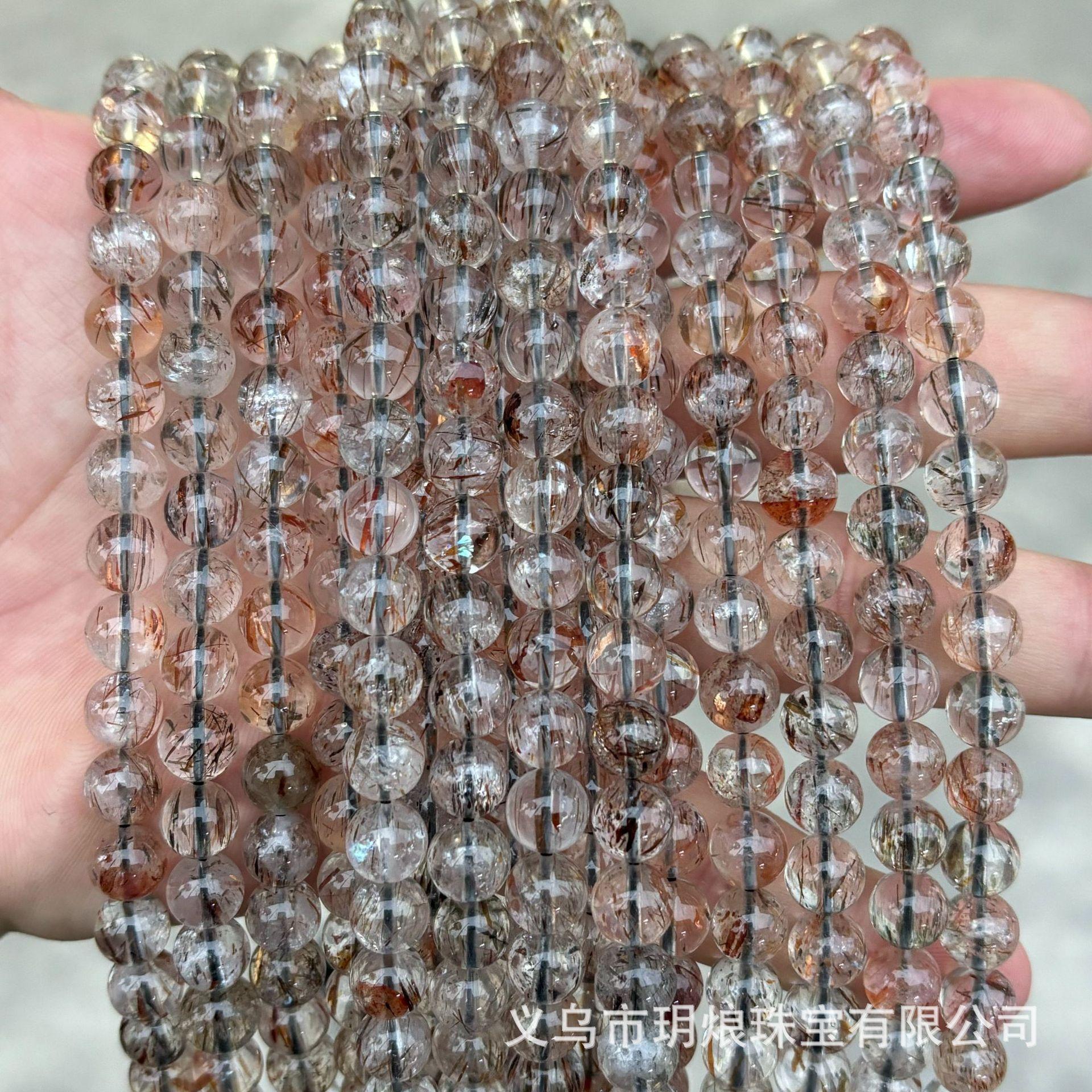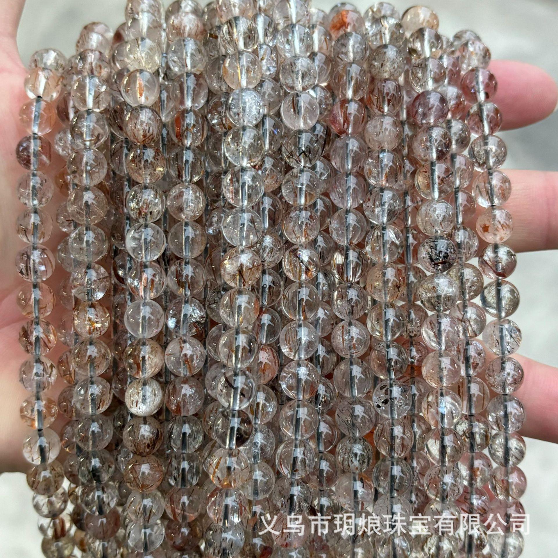 Contas redondas de cristal super sete ouro preto natural faça você mesmo cristal de cor de folha morta semiacabado com acessórios de joias de algodão fonte atacado