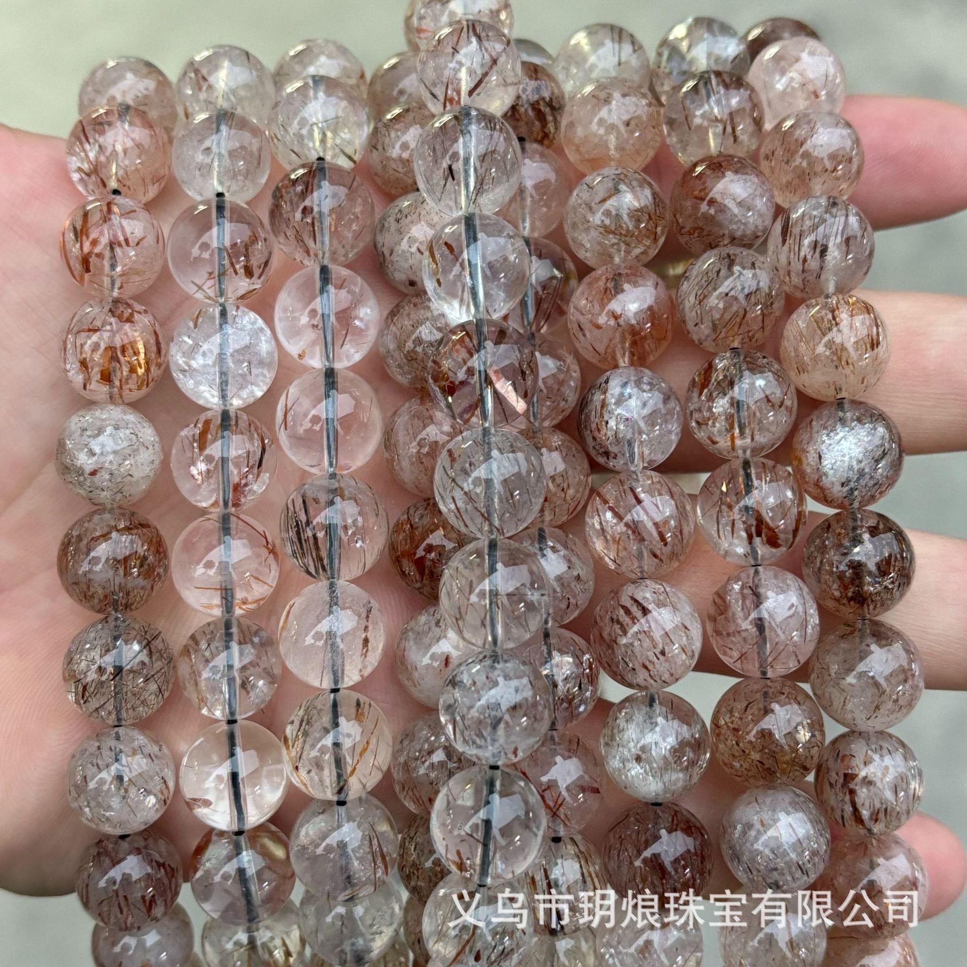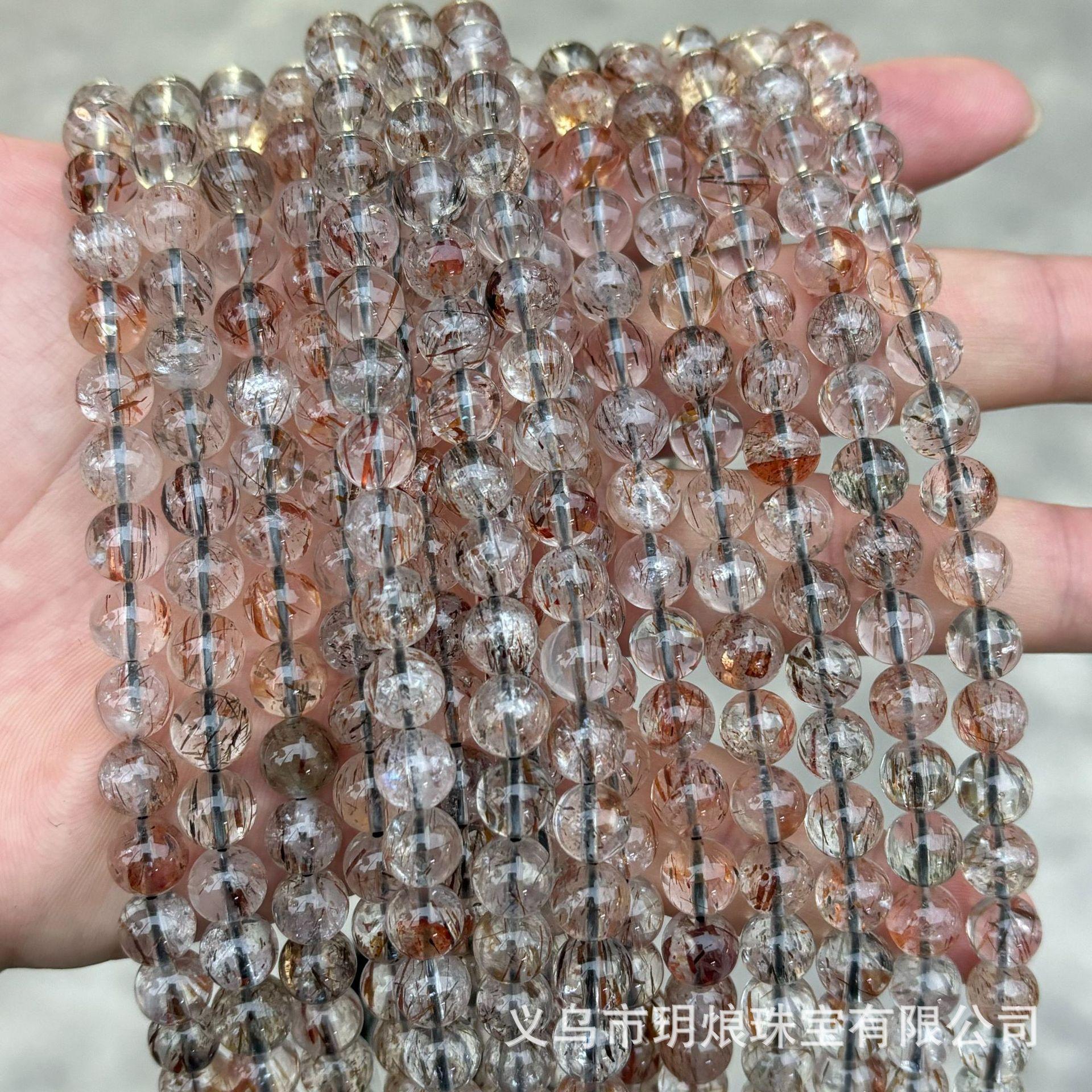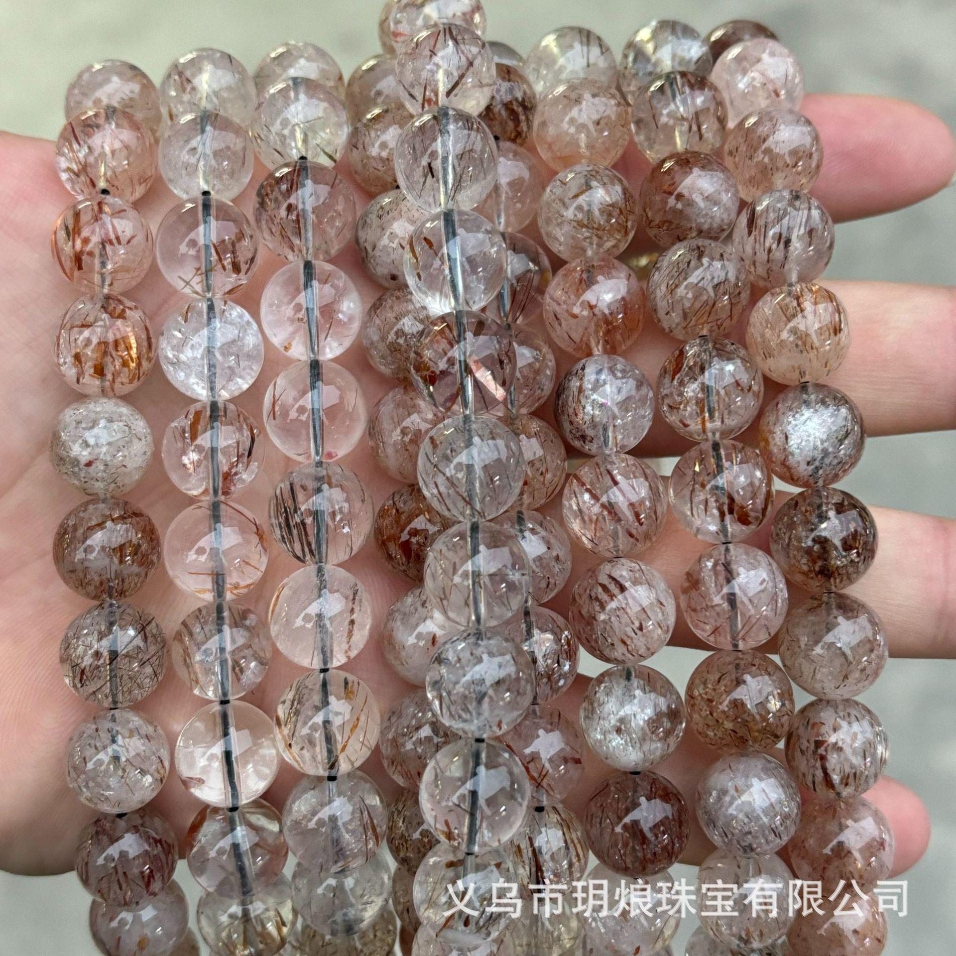 Contas redondas de cristal super sete ouro preto natural faça você mesmo cristal de cor de folha morta semiacabado com acessórios de joias de algodão fonte atacado
