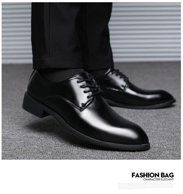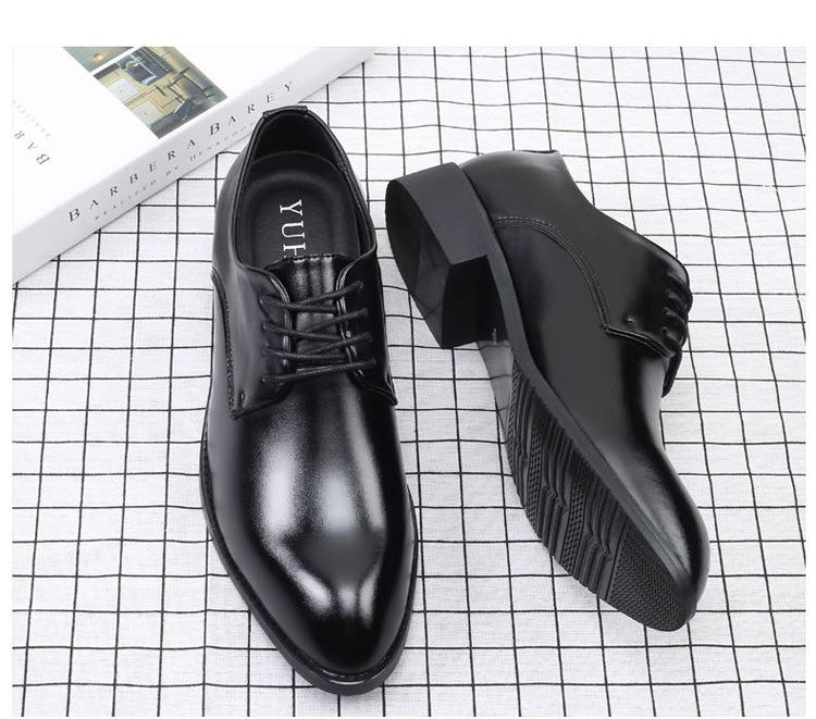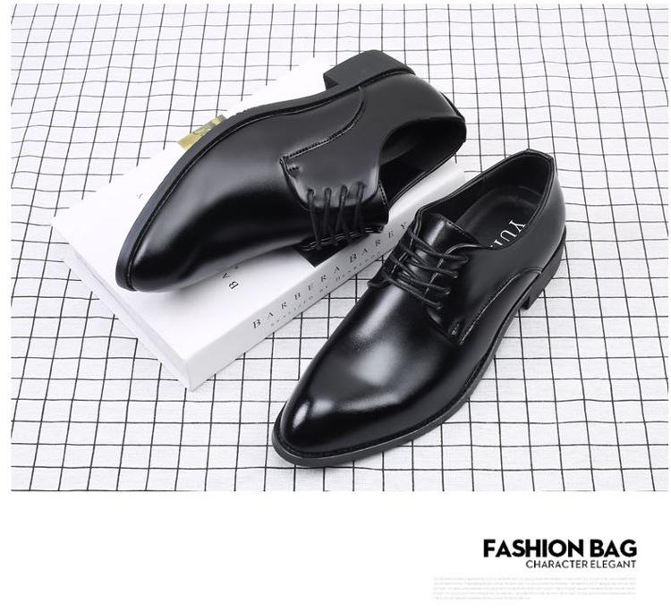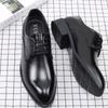 Sapatos de Couro Sociais Formais de Amarrar Pontudos para Homens, Sapatos de Casamento Jovens e Modernos, Sapatos Casuais Britânicos Estilo Coreano, Sapatos Masculinos com Aumento de Altura