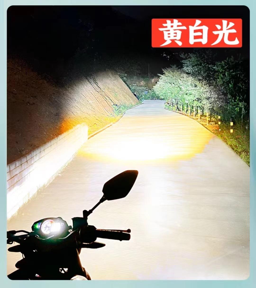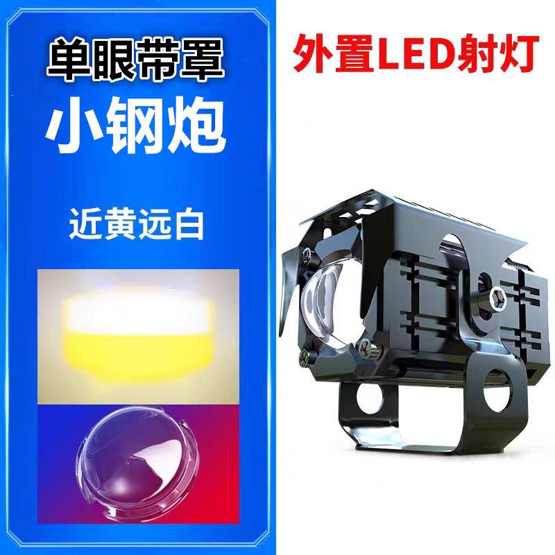 Holofote LED de arma de aço pequeno de olho único com tampa, lente de luz dupla amarela e branca, holofote modificado para carro elétrico