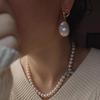 Golden bow button south sea gold bead necklace, White gold bow button warm white bead necklace