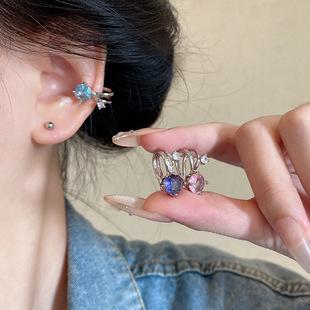 Brincos de clipe de orelha de lâmpada de zircônia colorida de luxo leve para mulheres, design de nicho, de alta qualidade, sem piercing, atacado