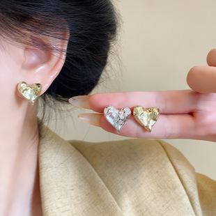 Brincos de textura de coração enrugado estilo coreano para mulheres nicho design leve luxo high-end ins estilo brincos atacado