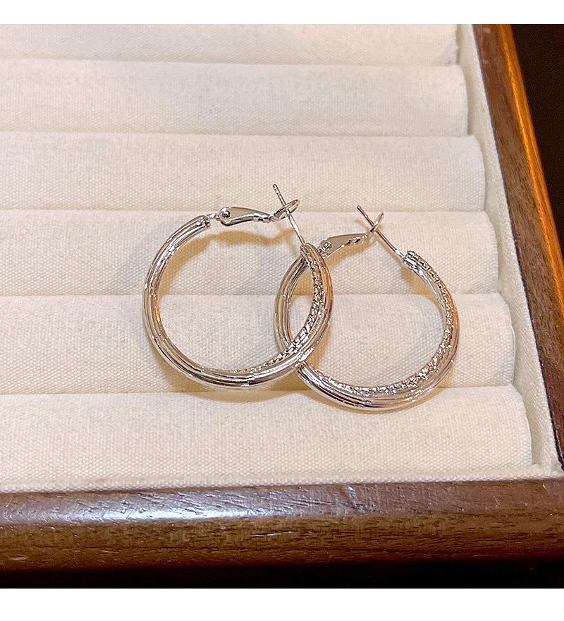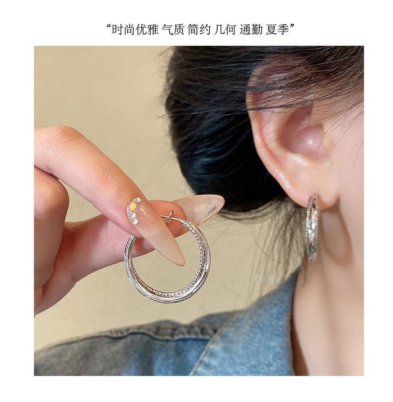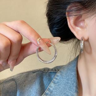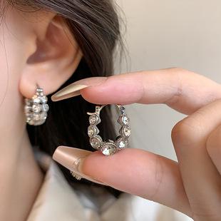 Brincos de diamante brilhantes de nicho de luxo leve e sofisticados, brincos de design de fivela de orelha circular de temperamento de luxo leve francês