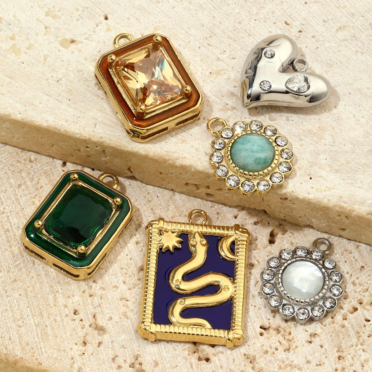 Compre Sete contas francesas geométricas olhos titânio aço faça você mesmo pingente amor cobra aço inoxidável jóias pedra natural colar pingente no atacado no Joom.pro