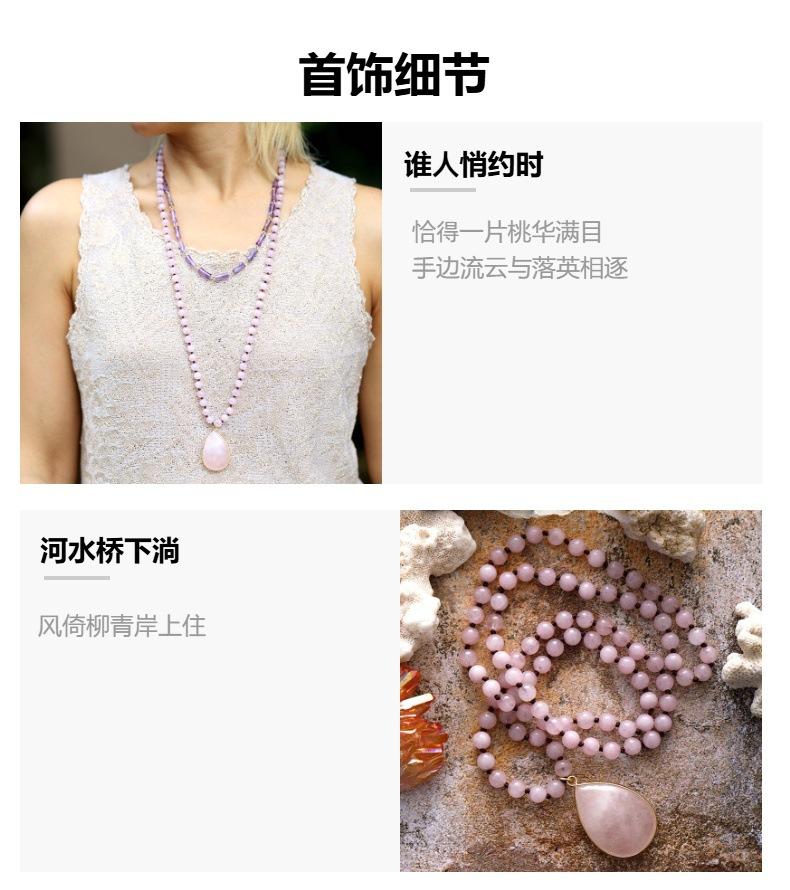 Colar com pingente de nó de contas feito à mão de pedra natural de alta qualidade, cristal rosa, luz, joias de pedra de luxo feitas à mão, Amazon