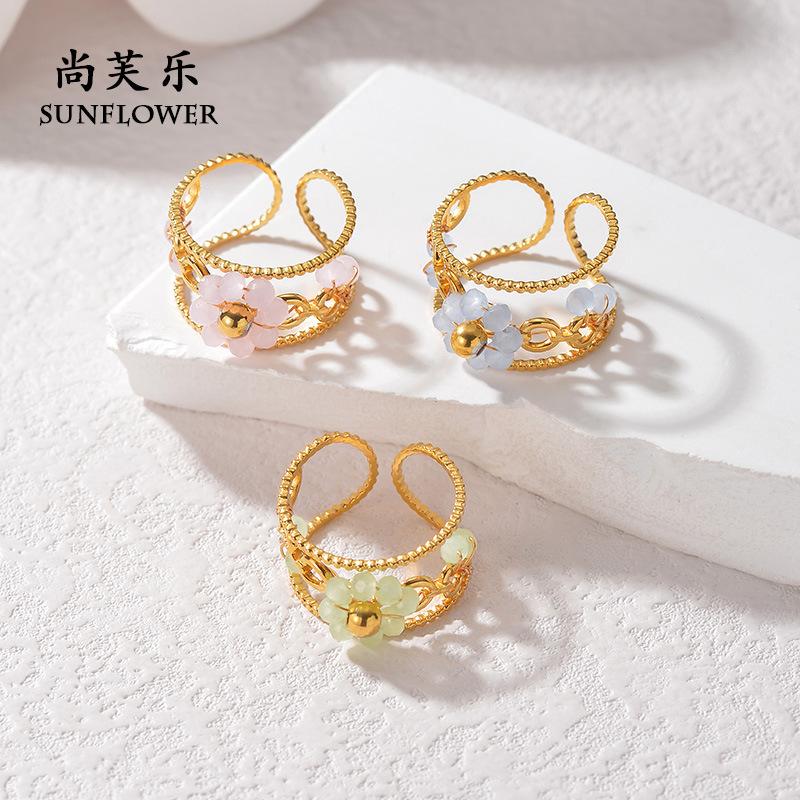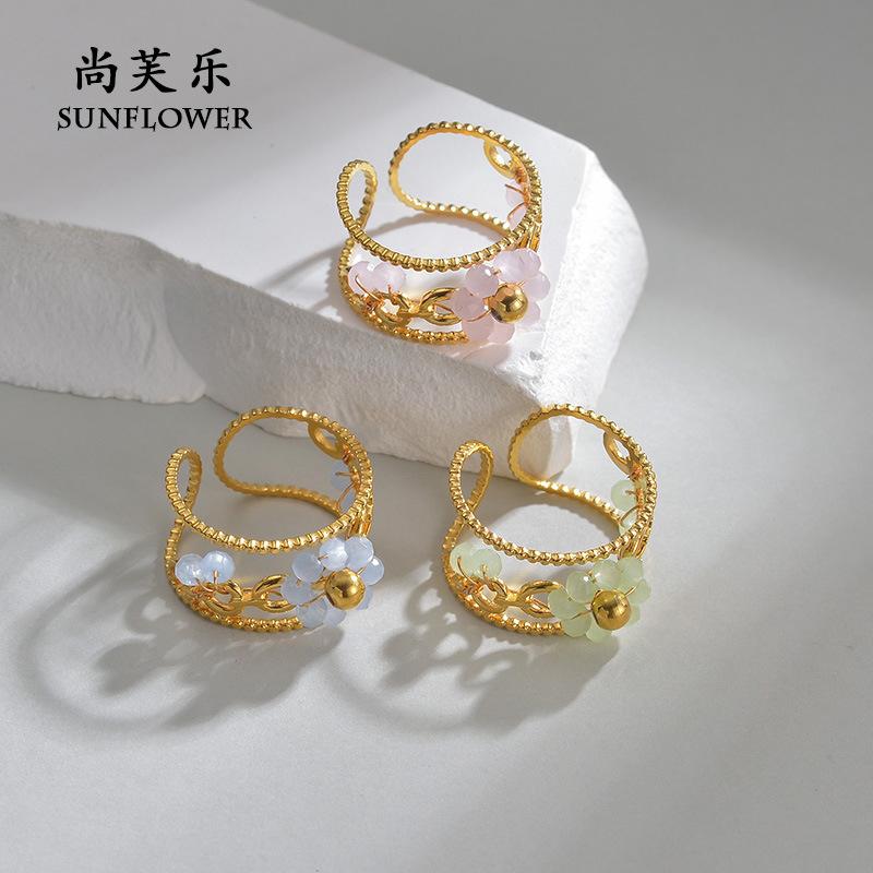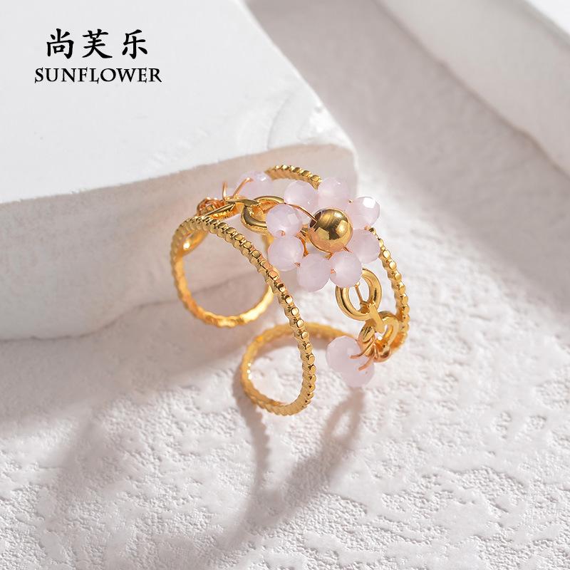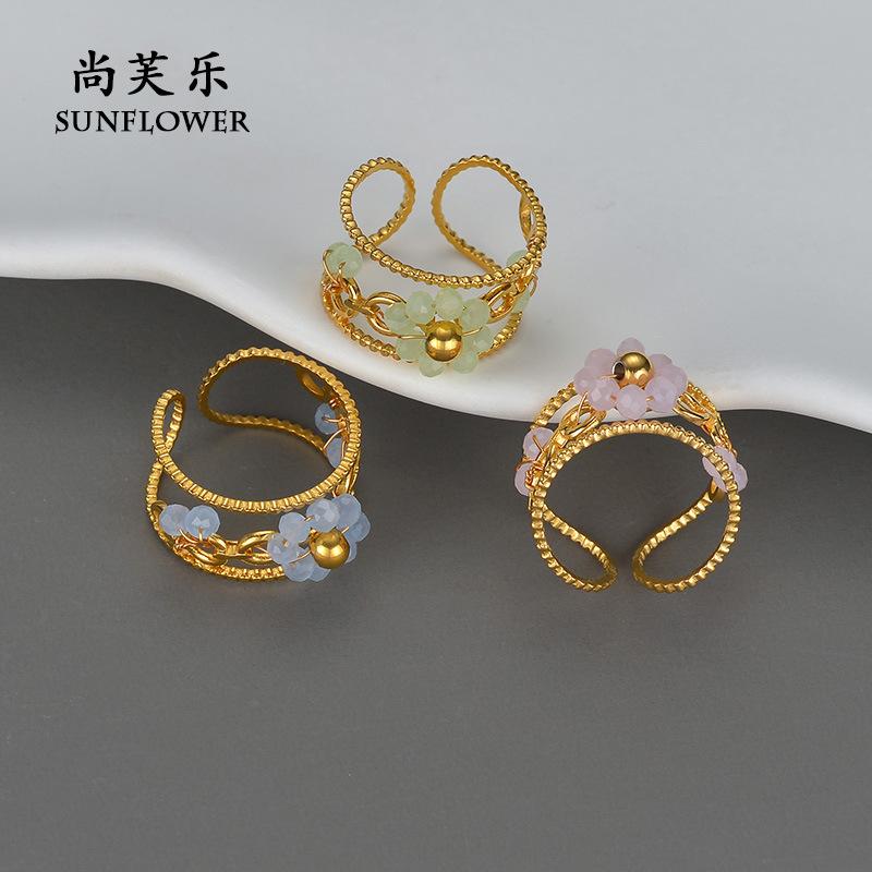 Compre Cross-border nova moda oco frisado flor aço inoxidável anel aberto nicho ins simples joias de alta qualidade no atacado no Joom.pro