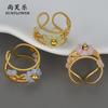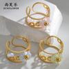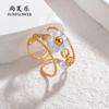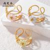 Cross-border nova moda oco frisado flor aço inoxidável anel aberto nicho ins simples joias de alta qualidade