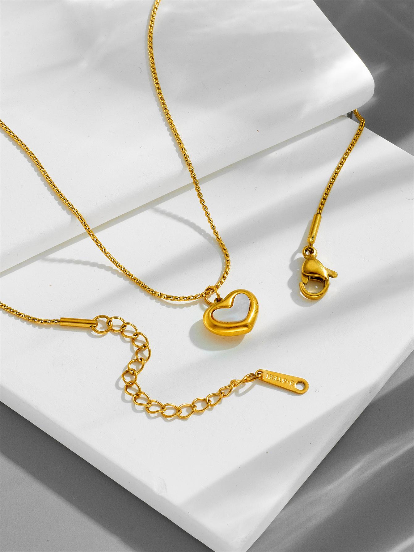 Compre Colar de coração de concha branca de alta qualidade com fritillaria do mar, corrente de clavícula, aço de titânio, ouro 18k, colar que não desbota no atacado no Joom.pro
