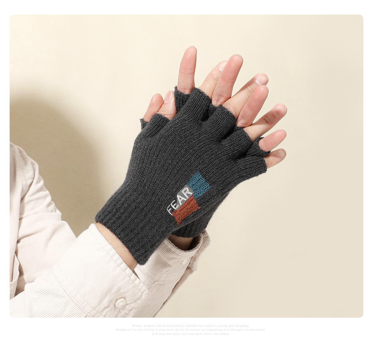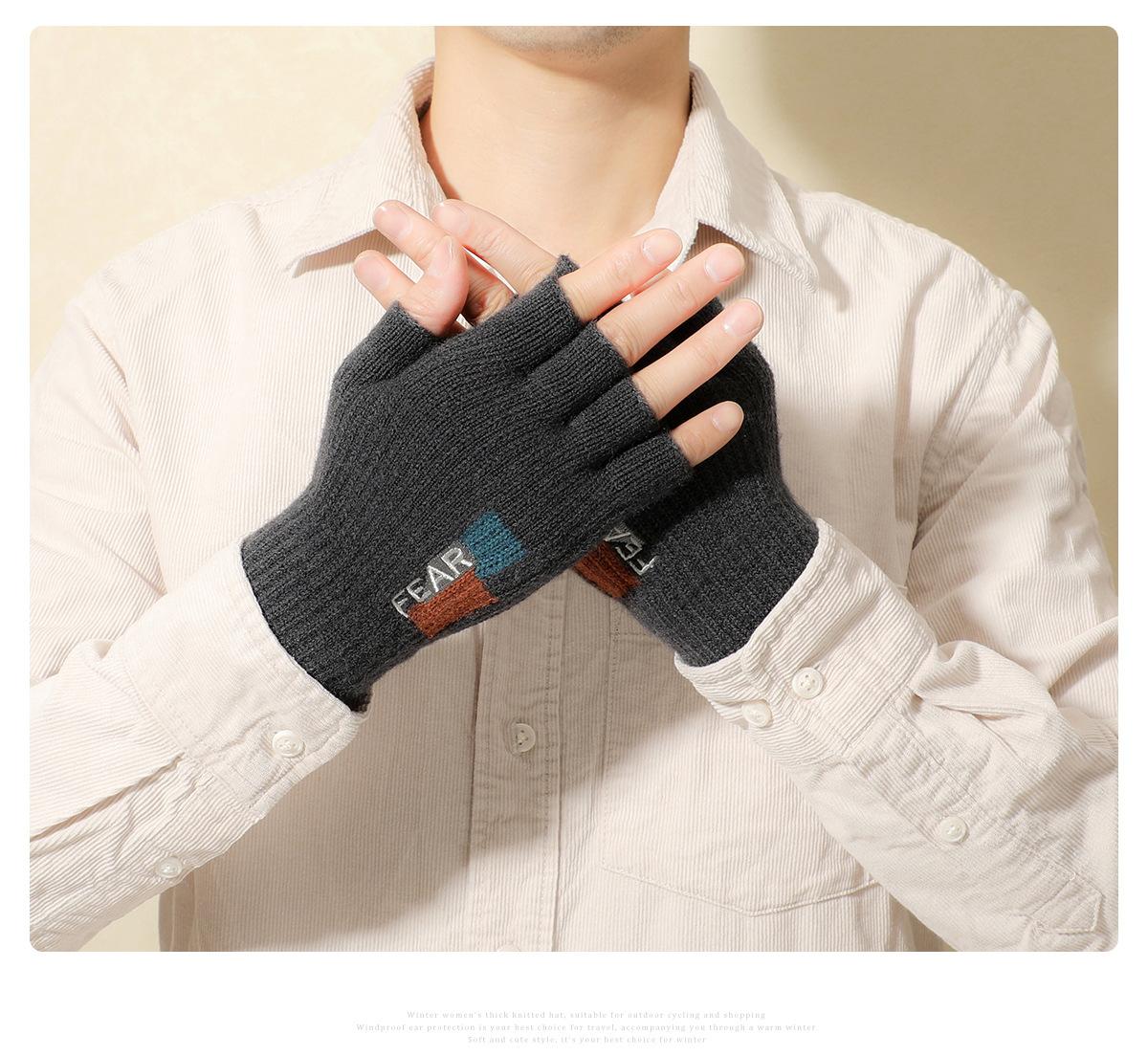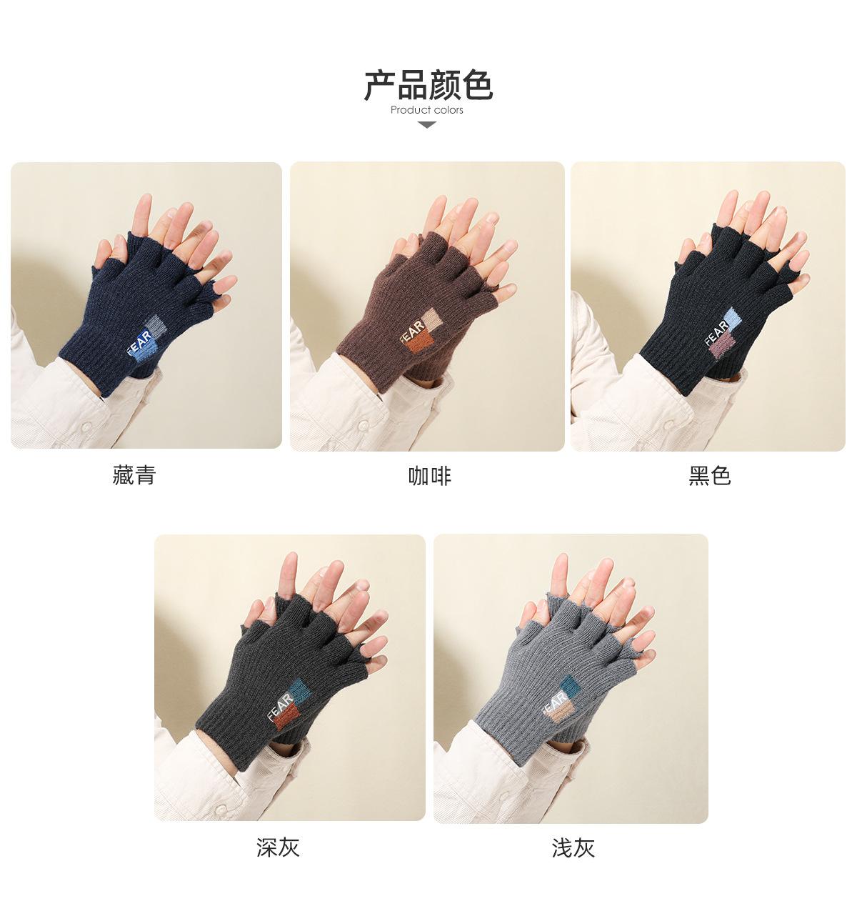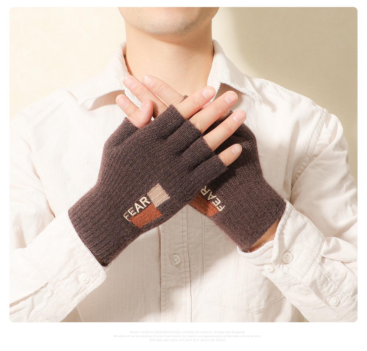 Luvas Meio Dedo Masculinas Quentes Espessas Outono e Inverno Dirigir Andar de Bicicleta Meio Dedo Exposto Estudantes Escrevendo Luvas de Lã à Prova de Frio