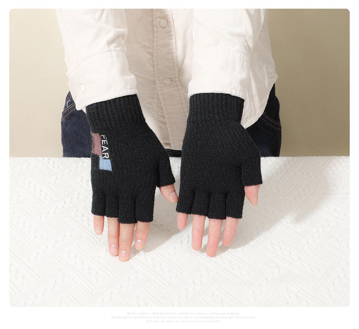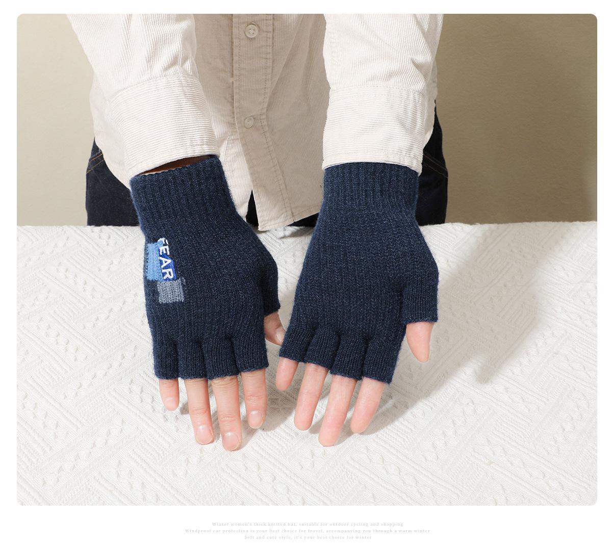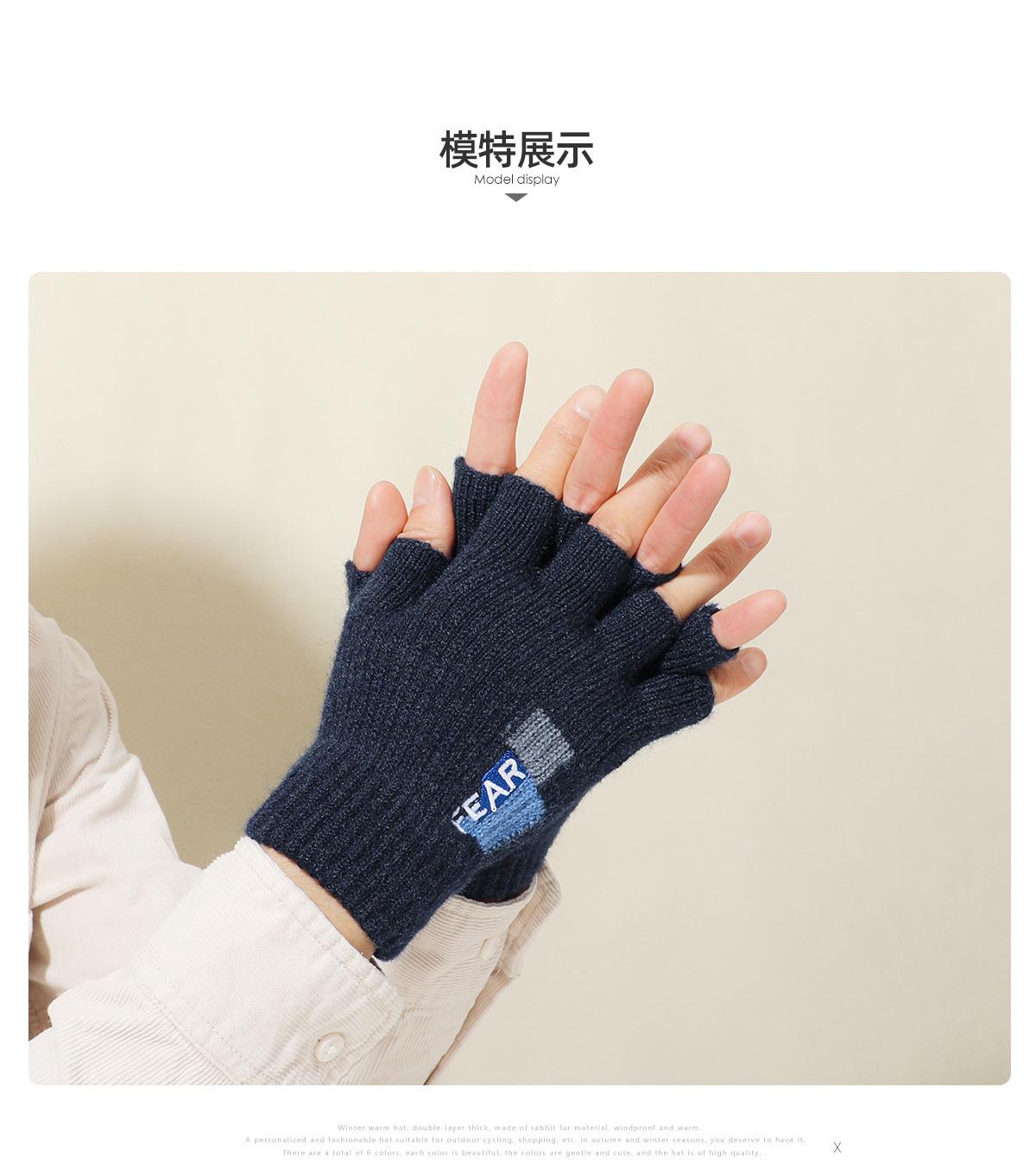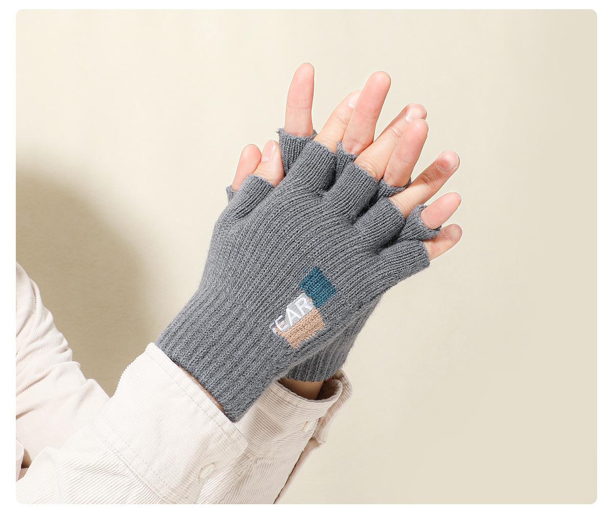 Luvas Meio Dedo Masculinas Quentes Espessas Outono e Inverno Dirigir Andar de Bicicleta Meio Dedo Exposto Estudantes Escrevendo Luvas de Lã à Prova de Frio
