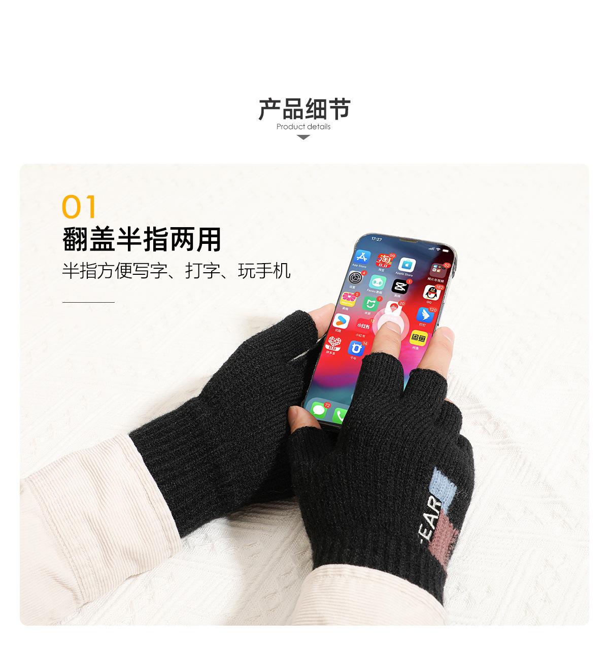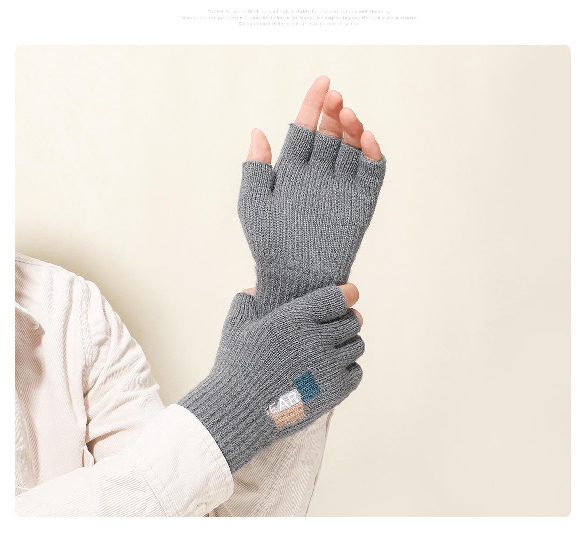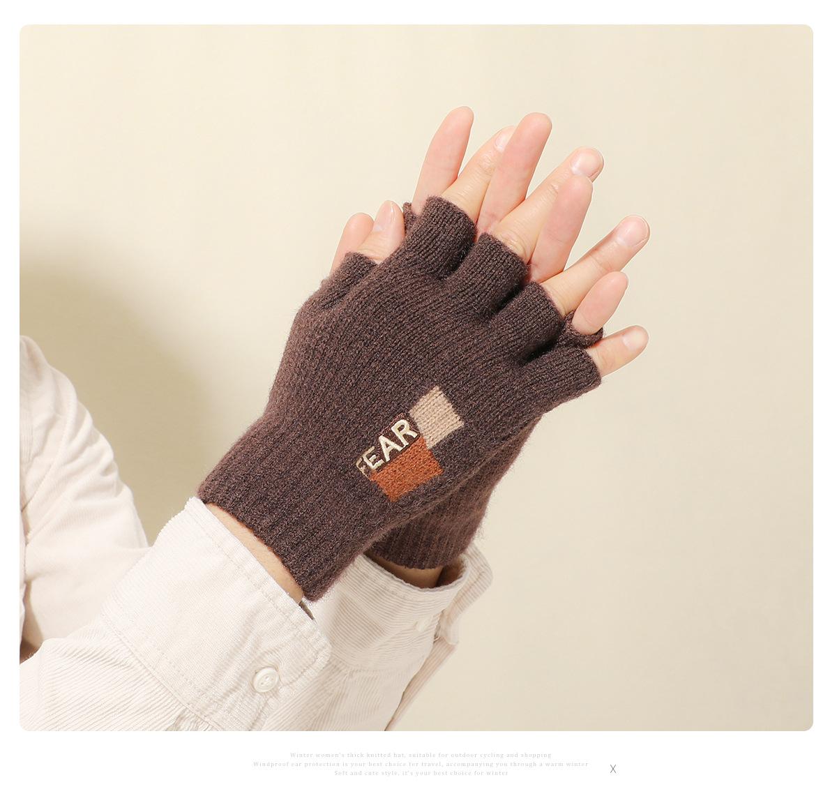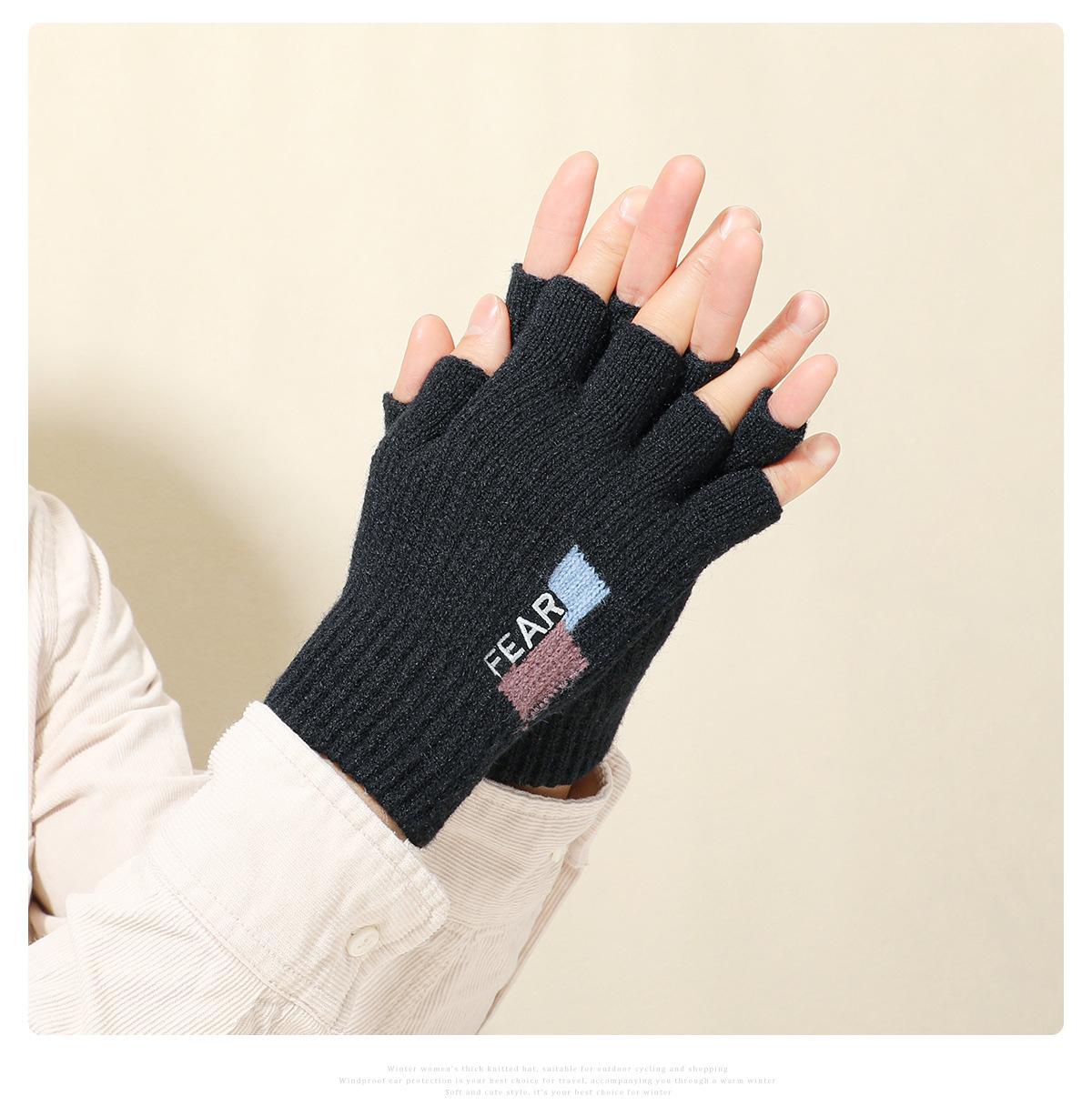 Luvas Meio Dedo Masculinas Quentes Espessas Outono e Inverno Dirigir Andar de Bicicleta Meio Dedo Exposto Estudantes Escrevendo Luvas de Lã à Prova de Frio