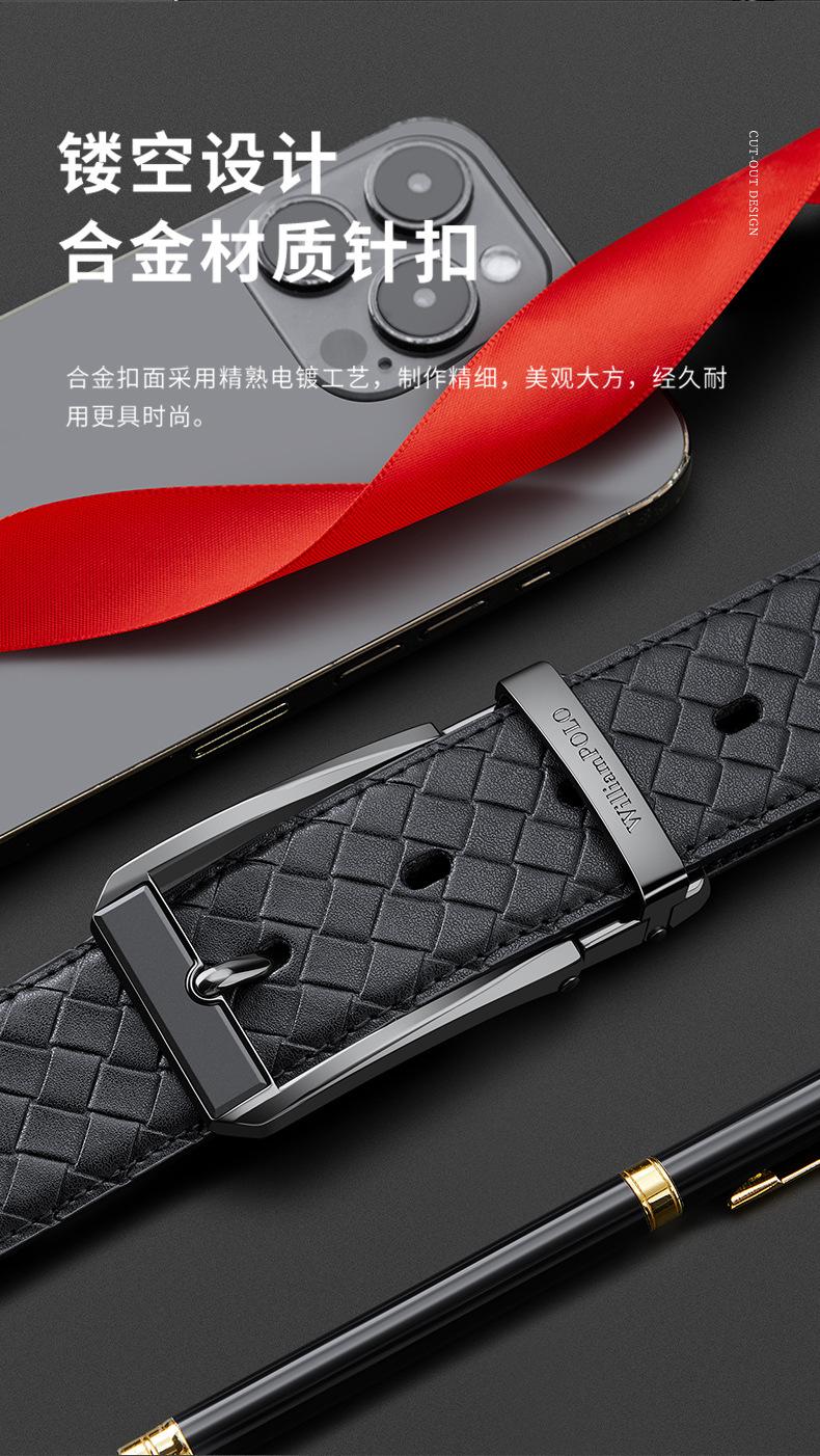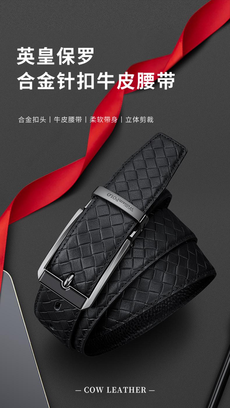 Cinto masculino King Paul com fivela de pino, couro legítimo, couro de vaca, cinto moderno e moderno para negócios, cinto masculino moderno e sofisticado