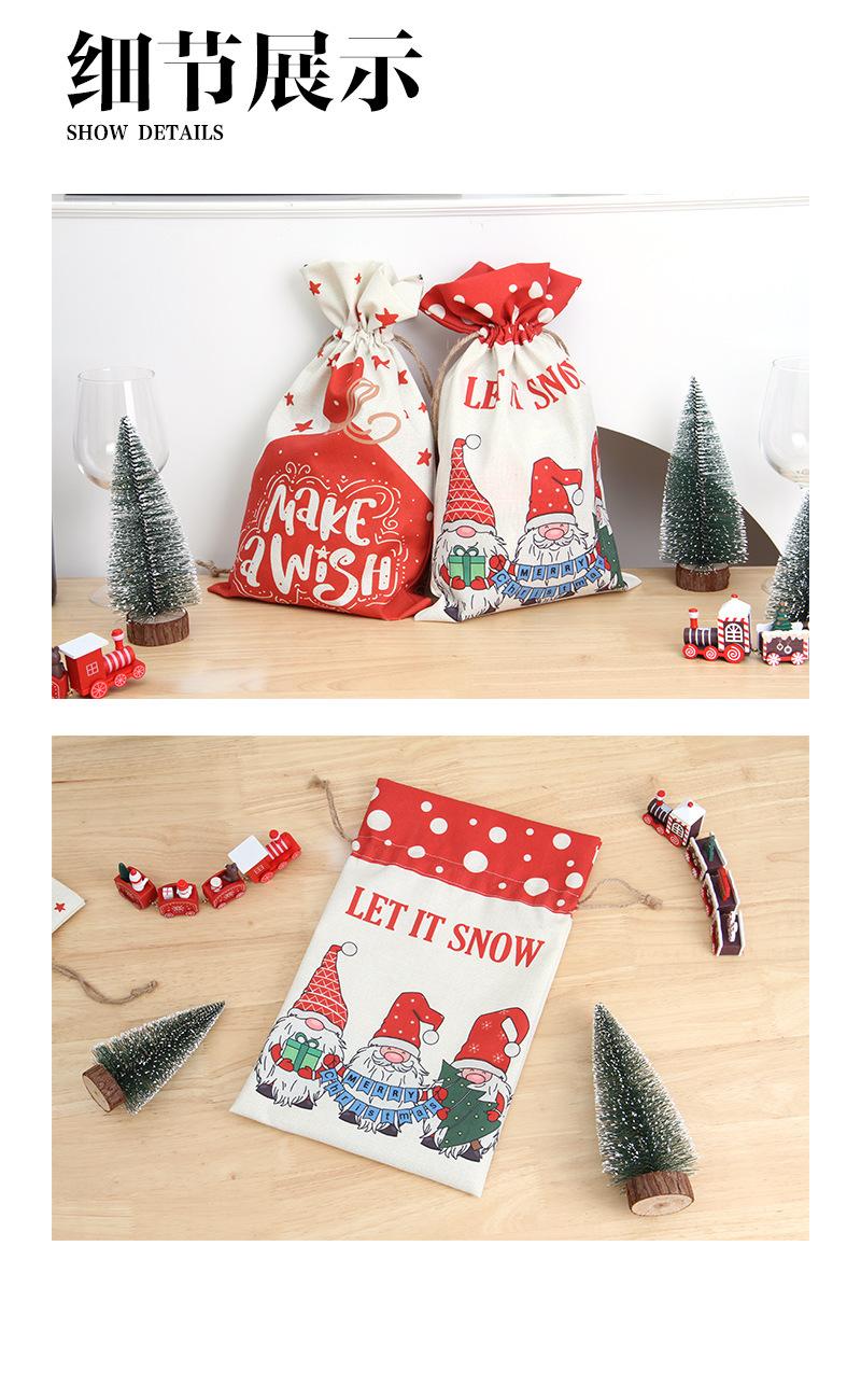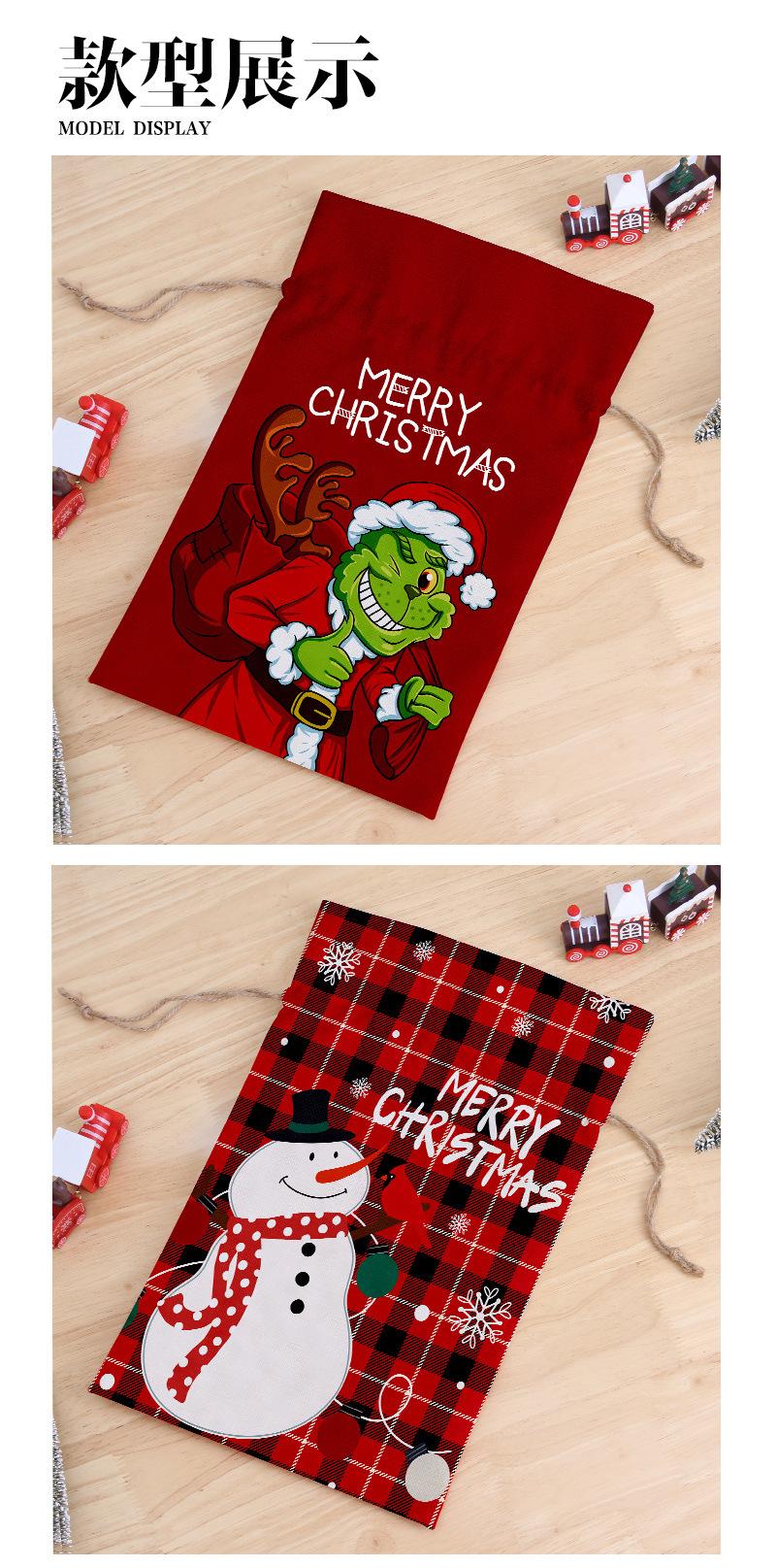 Cross-border venda quente saco de doces de Natal dupla face impresso linho cordão saco cordão decorativo saco de presente de Papai Noel