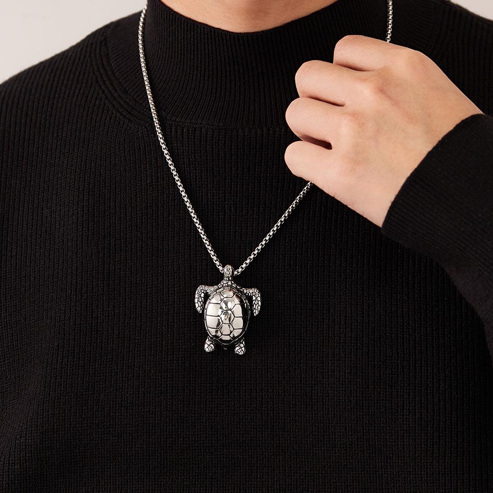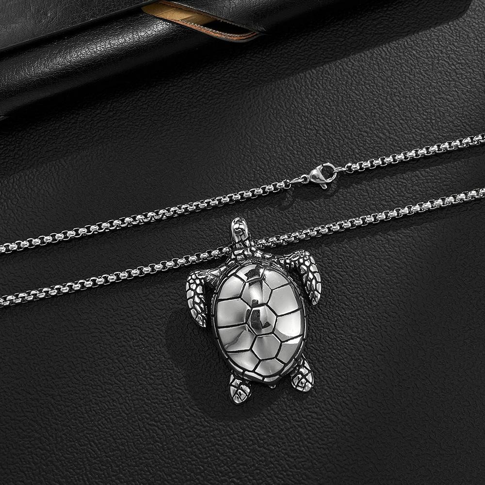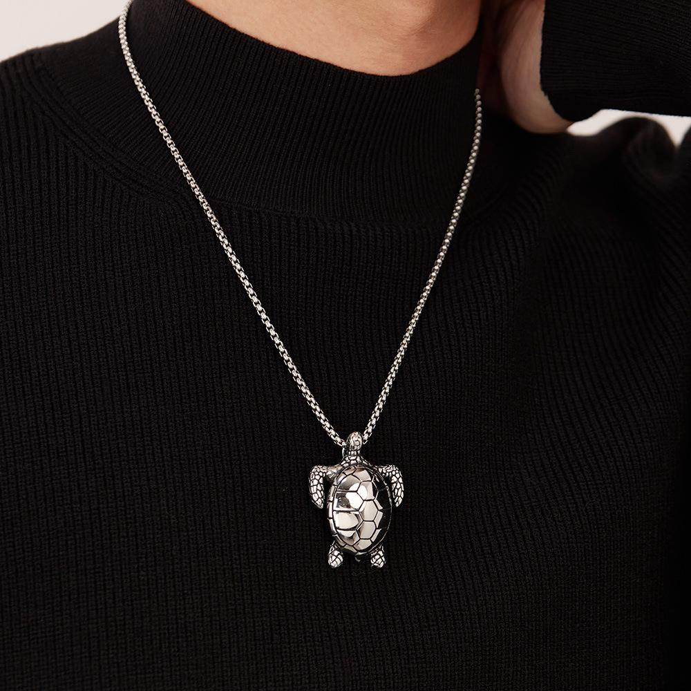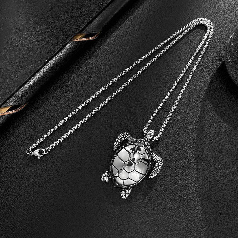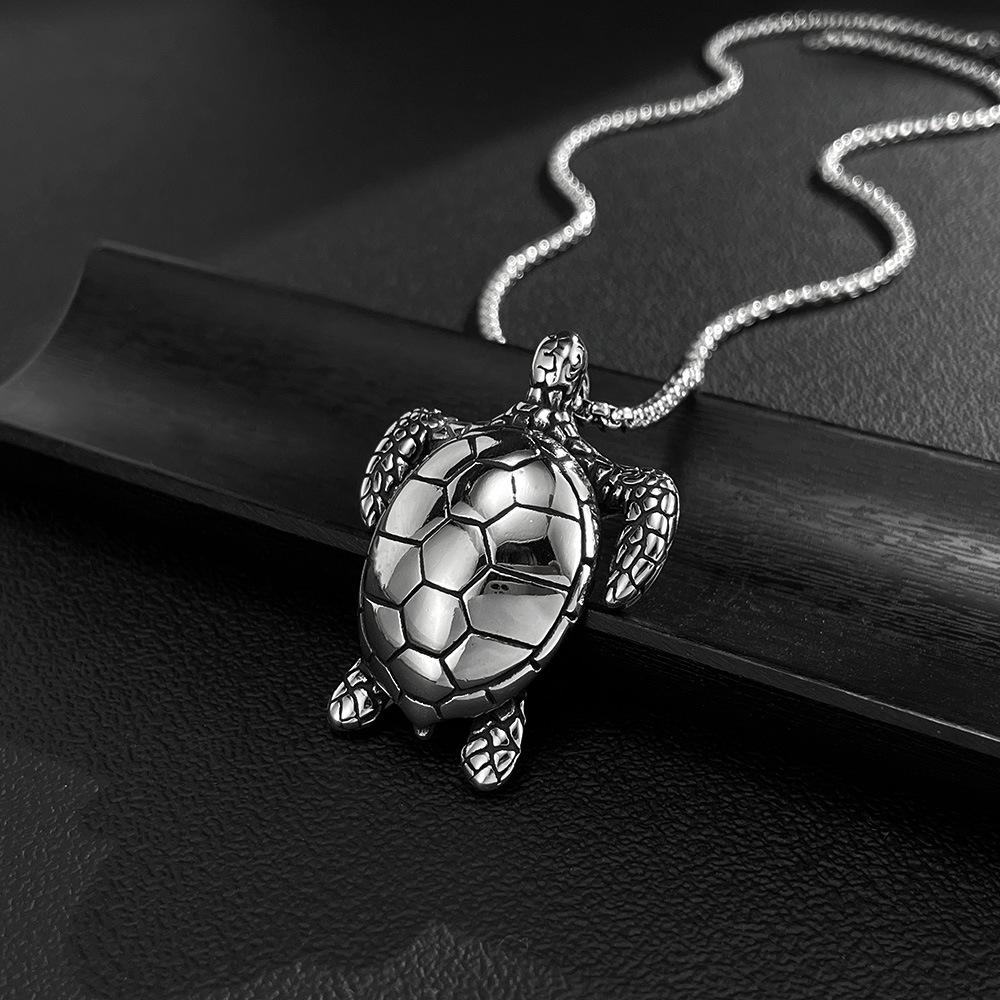 Compre Colar europeu e americano de aço titânio joias masculinas moda personalidade hip hop tendência versátil joias pingente de tartaruga de aço inoxidável no atacado no Joom.pro