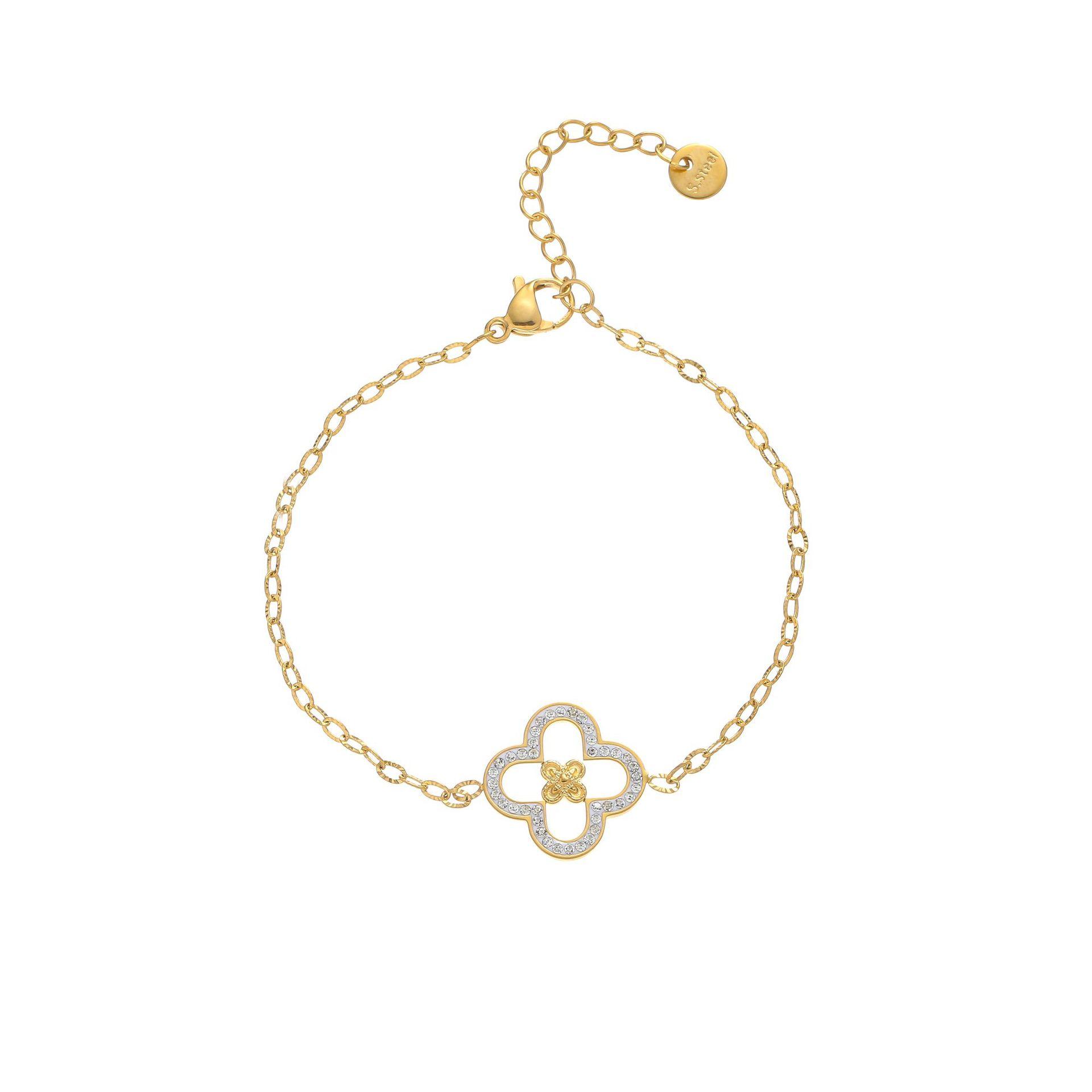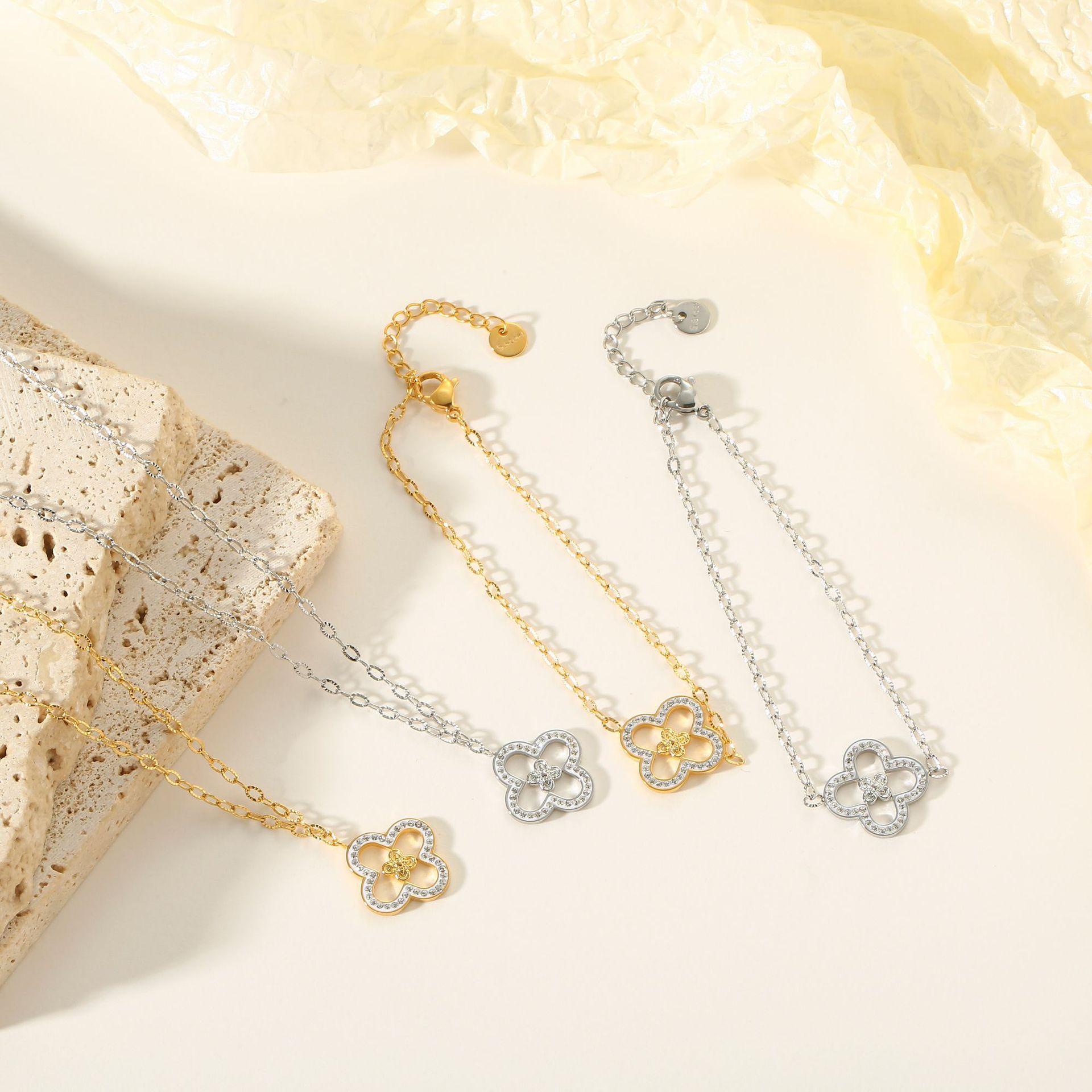 Compre Pulseira Trevo de aço titânio joias femininas aço inoxidável não desbota ins textura europeia e americana combinação multicolorida luxo leve no atacado no Joom.pro