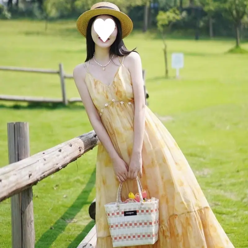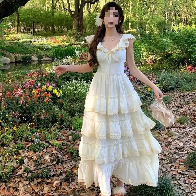 Vestido Feminino Estilo Francês Babado Gordinho Cobrindo a Carne e Aparência Emagrecedora Vestido Feminino Leve Protetor Solar Decote V Vestido de Férias