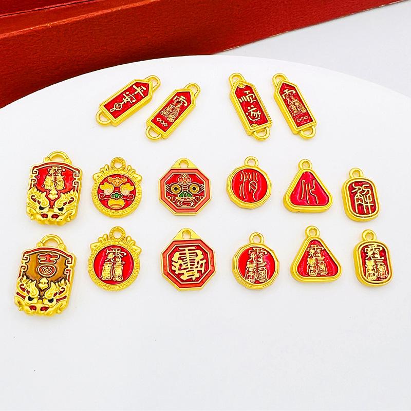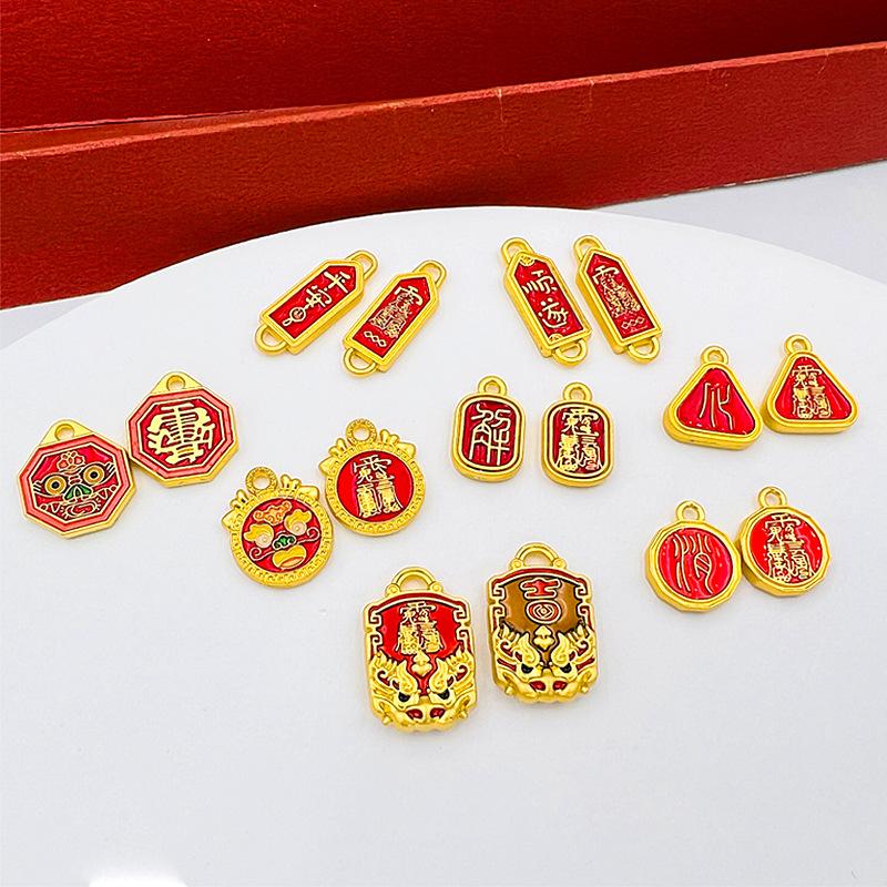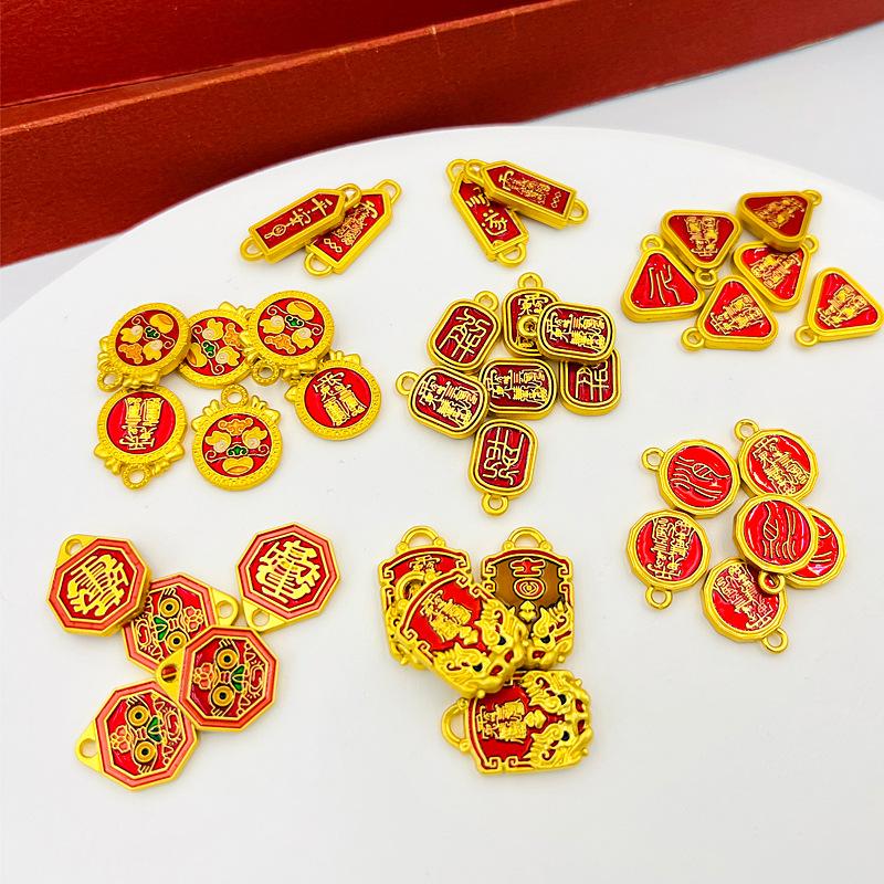 Dinastia Guo Fa Antigo Ouro Ping An Suavemente Barreira Eliminação Marca Taisui Fu Marca Lagerstroemia Myrtle Taboo Pingente DIY Pulseira Colar Pingente