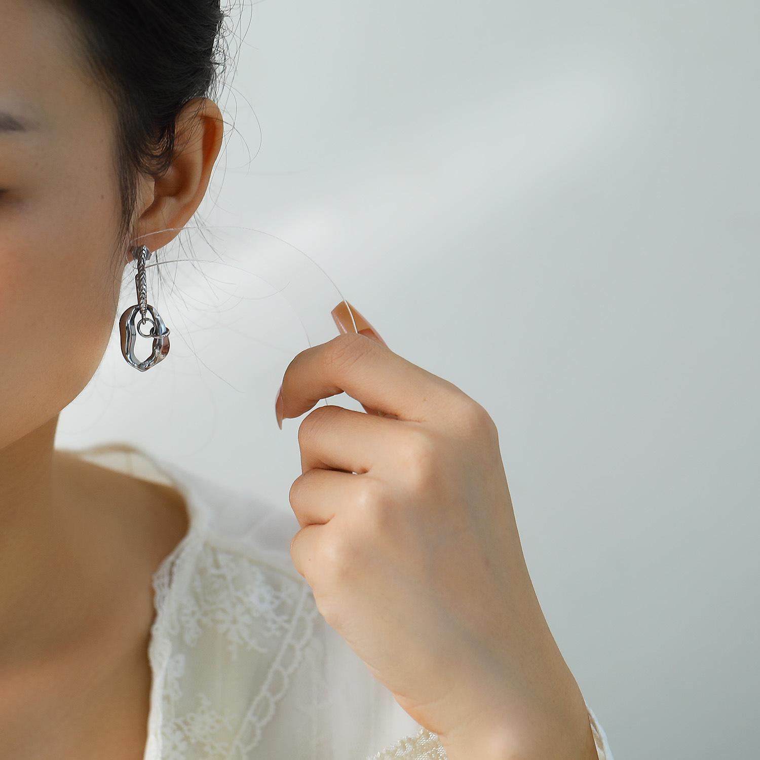 Europeu e americano personalidade moda aço inoxidável brincos geométricos brincos femininos ins nicho high-end brincos Joker atacado