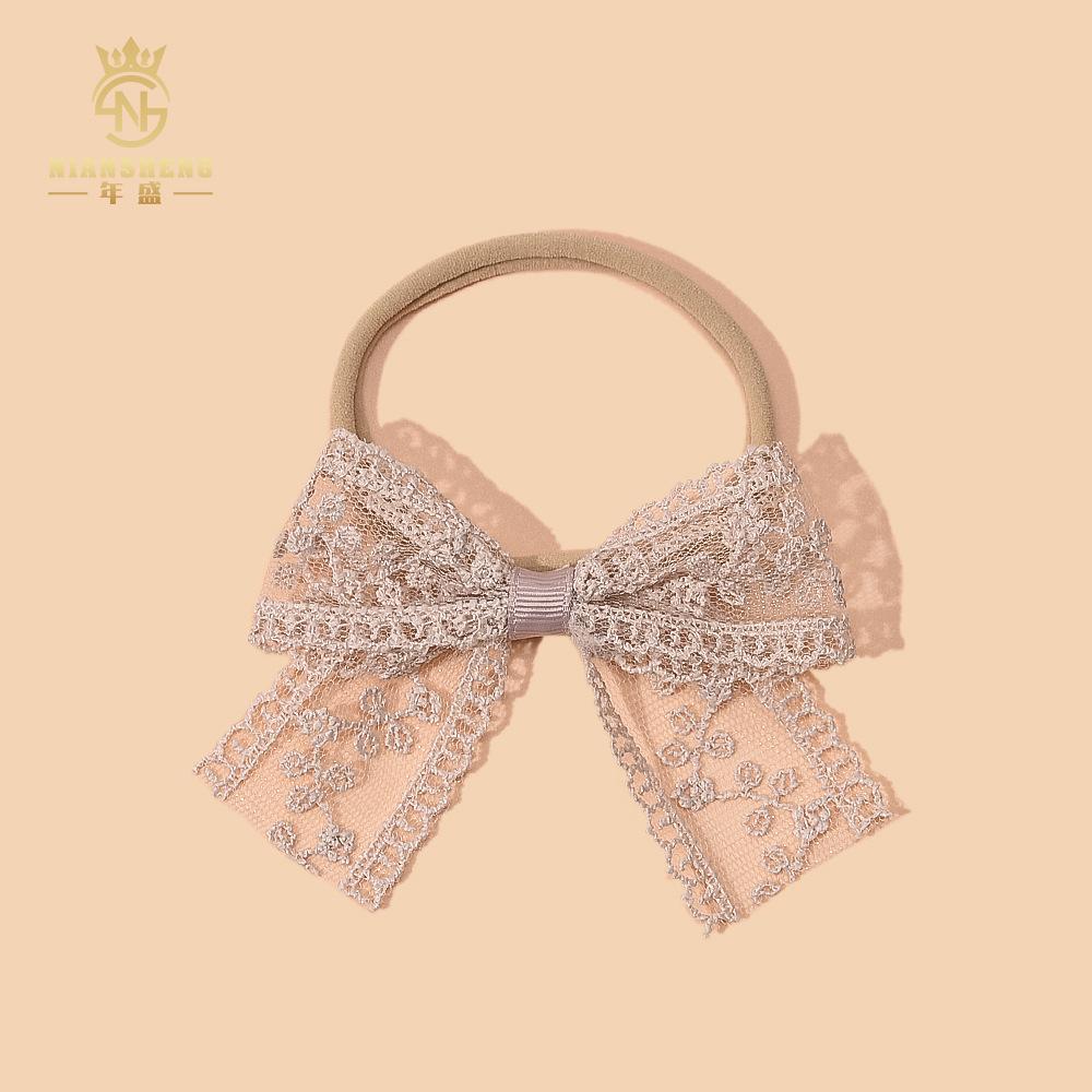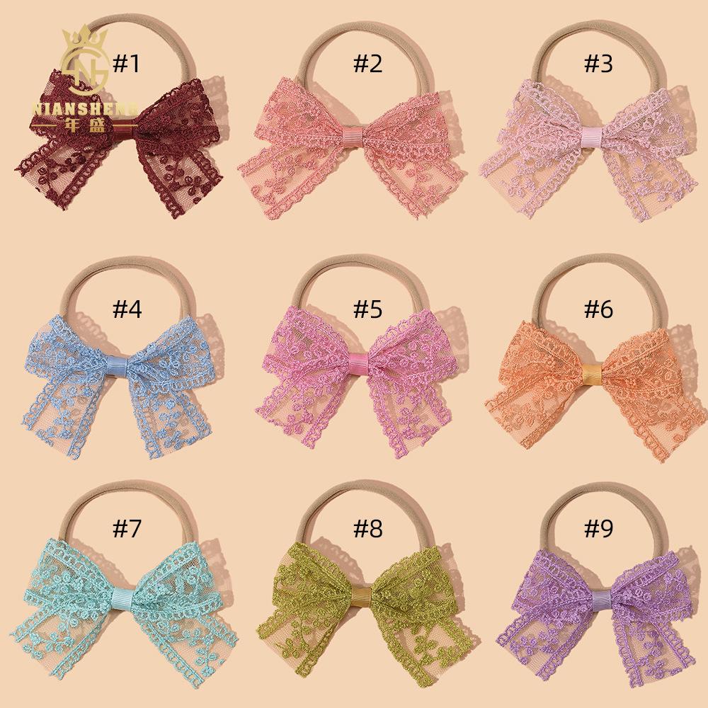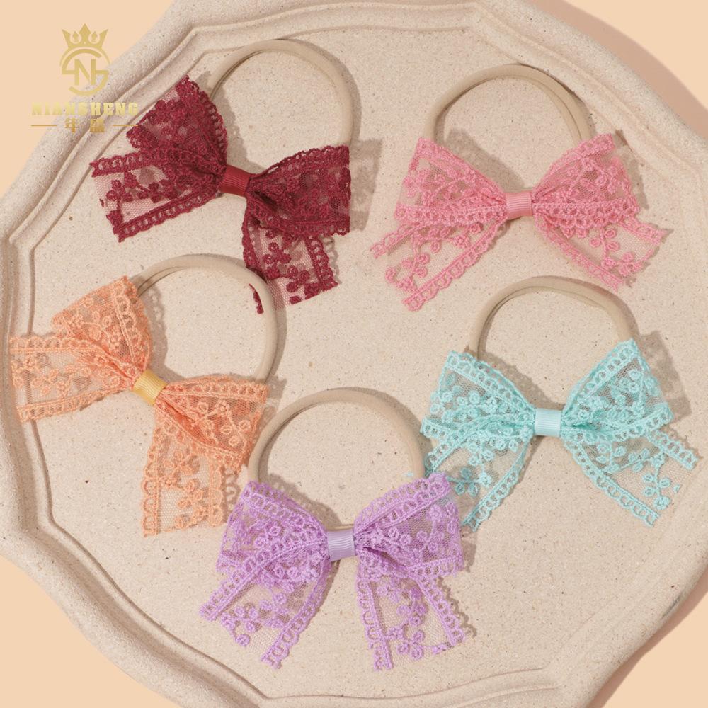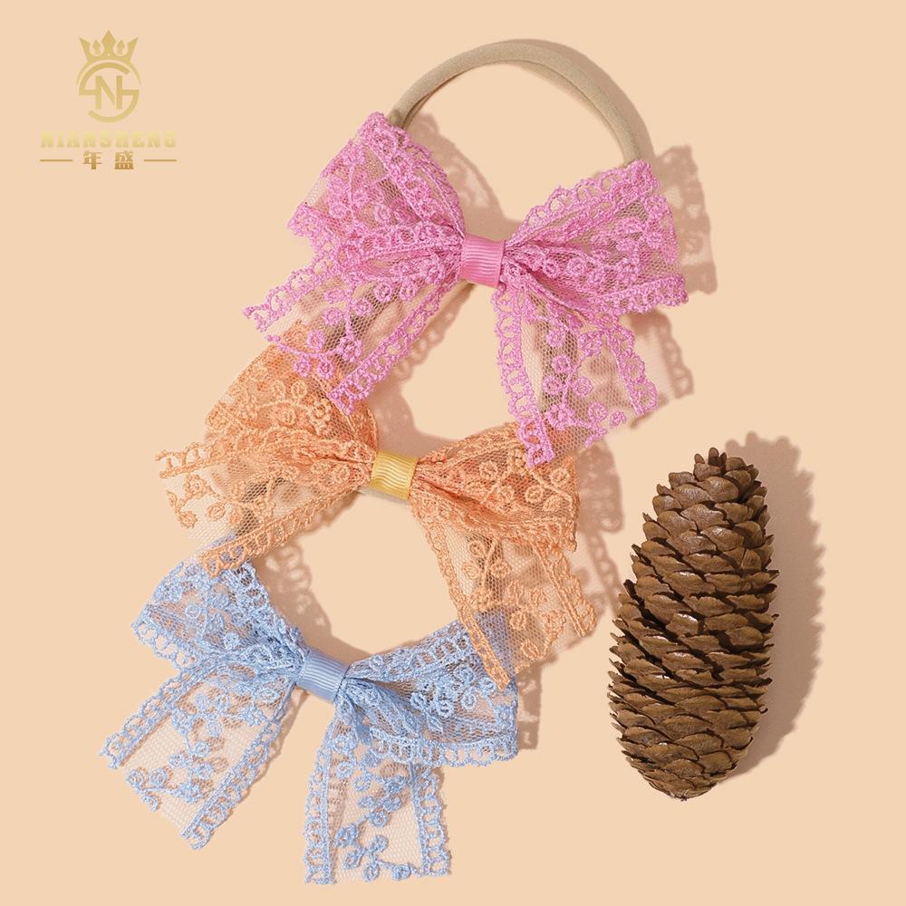 Europeu e americano novo bebê bonito laço renda fina faixa de cabelo crianças elástico náilon acessórios de cabelo bebê oco headwear